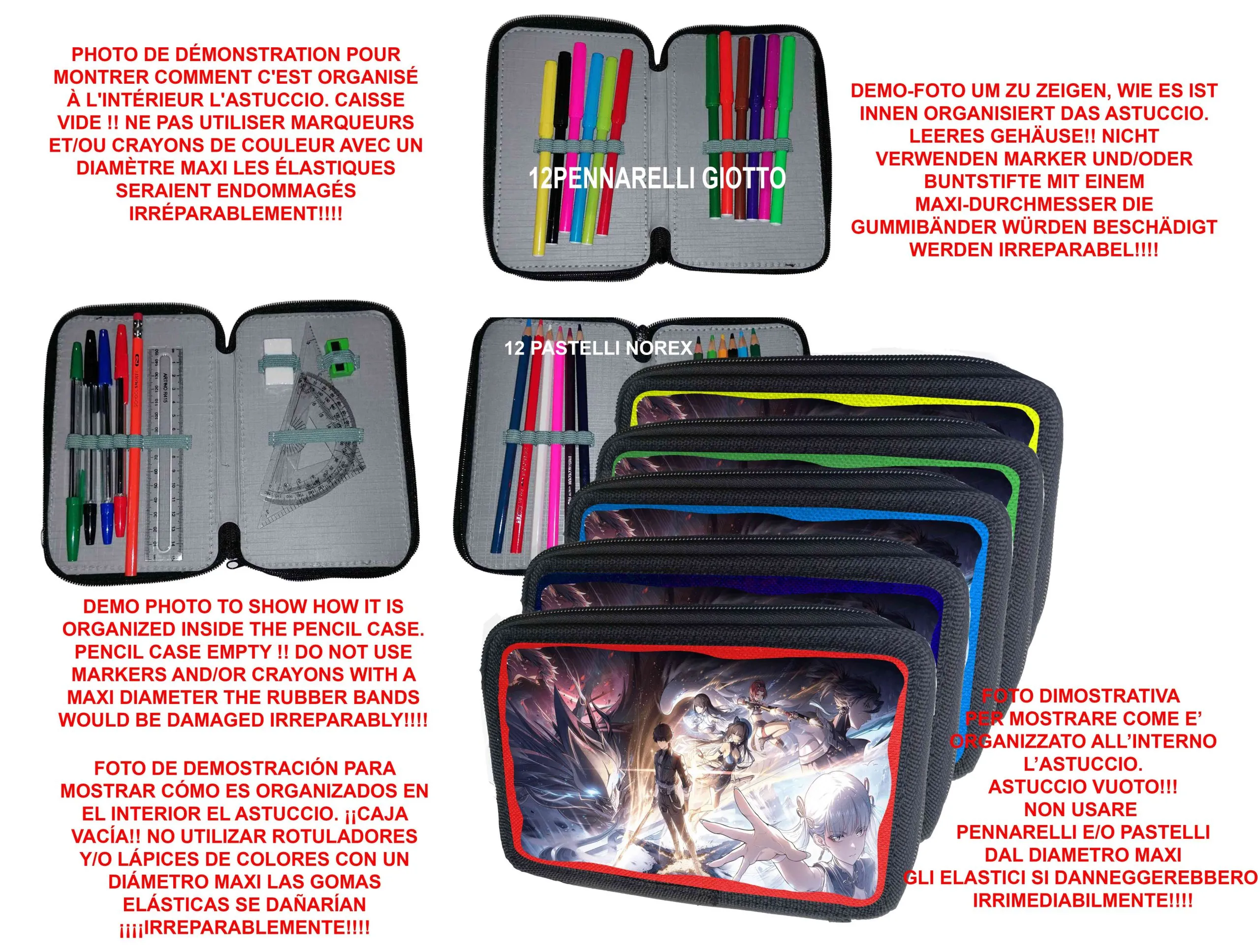 WHUTERING Gamer Astuccio scuola 3 zip completo accessori