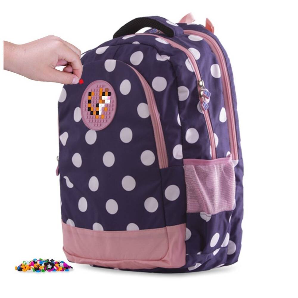 Per un uso confortevole, lo zaino ha uno schienale imbottito dalla forma ergonomica con ventilazione e un sistema di scorrimento che consente di regolare la posizione ottimale delle cinghie rispetto all’altezza del bambino. Le spalline sono larghe e imbottite e nella parte anteriore una fibbia toracica regolabile in lunghezza. Per un comodo trasporto in mano, lo zaino è dotato di una maniglia imbottita e il fondo è dotato di due protezioni anti-abrasione. Sulla parte anteriore l’esclusivo pannello creativo PIXIE CREW in silicone, un cerchio dal diametro di 9 cm e 86 posizioni per i PIXIES (pixel), removibili e rinnovabili in qualsiasi momento, in perfetto stile pixel art. Lo zaino è accompagnato da un pacchetto di circa 55 piccoli PIXIES (pixel). -