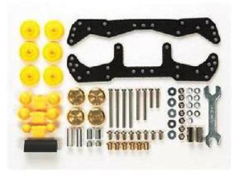 Il Tune-up per il telaio MA è un kit perfetto per i principianti. Il set include una selezione di optional base per la personalizzazione del telaio MA. Include: supporti FRP, stabilizzatori con sfere e rotelle, mass damper, minuteria per l’installazione e chiave facilitare il montaggio. Compatibile anche con i telai: AR, VS e Super XX. L’immagine indica un esempio di installazione sul modello
