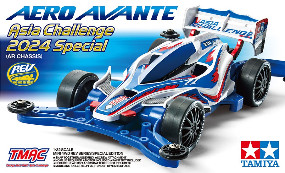 Per commemorare la Tamiya mini4WD Asia Challenge 2024 (TMAC), prevista in Corea all’inizio dell’estate del prossimo anno, Tamiya dà il benvenuto anche al nostro popolare articolo 18701 Aero Avante (AR) con un nuovo colore della carrozzeria (Bianca) e telaio AR (Blu), adesivi di nuovo disegno e nuovo packaging, che rendono il modello unico.