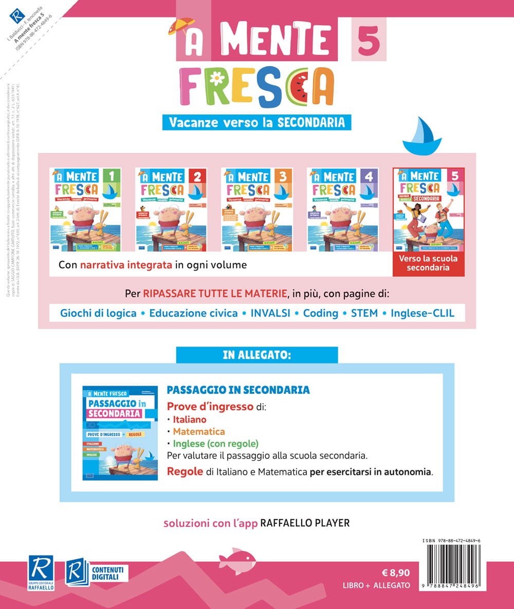 A mente fresca 5 – Vacanze verso la secondaria è il quaderno delle vacanze pensato per gli alunni della classe quinta primaria che si preparano al passaggio nella scuola secondaria di primo grado.