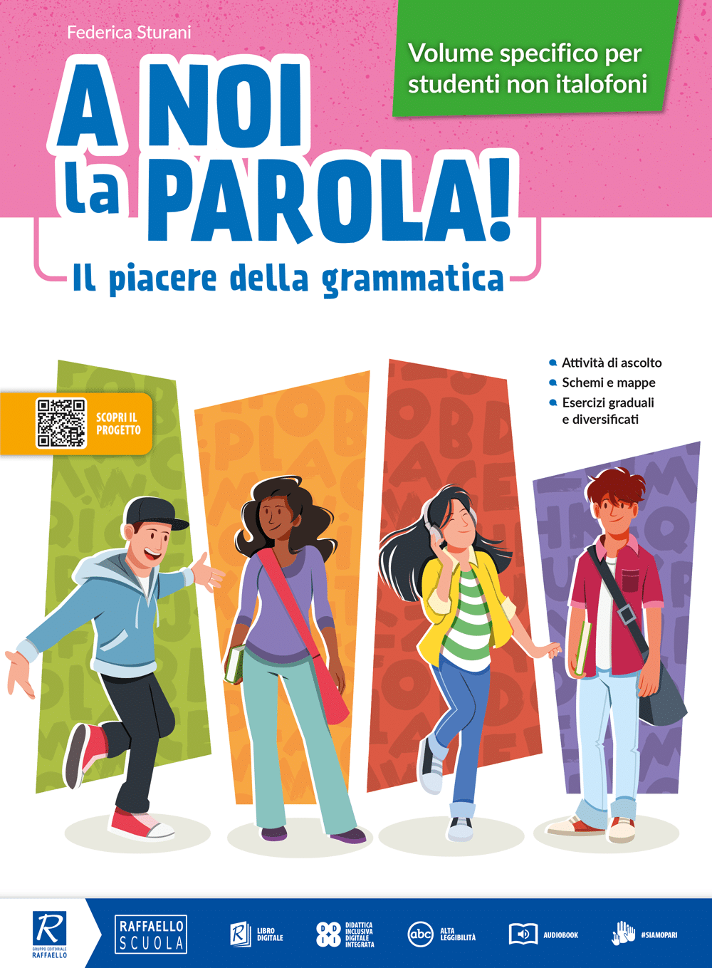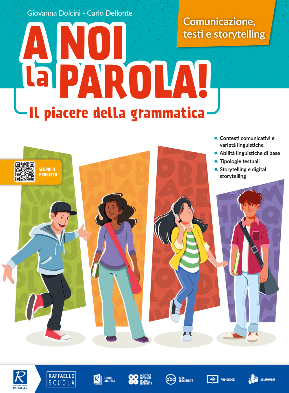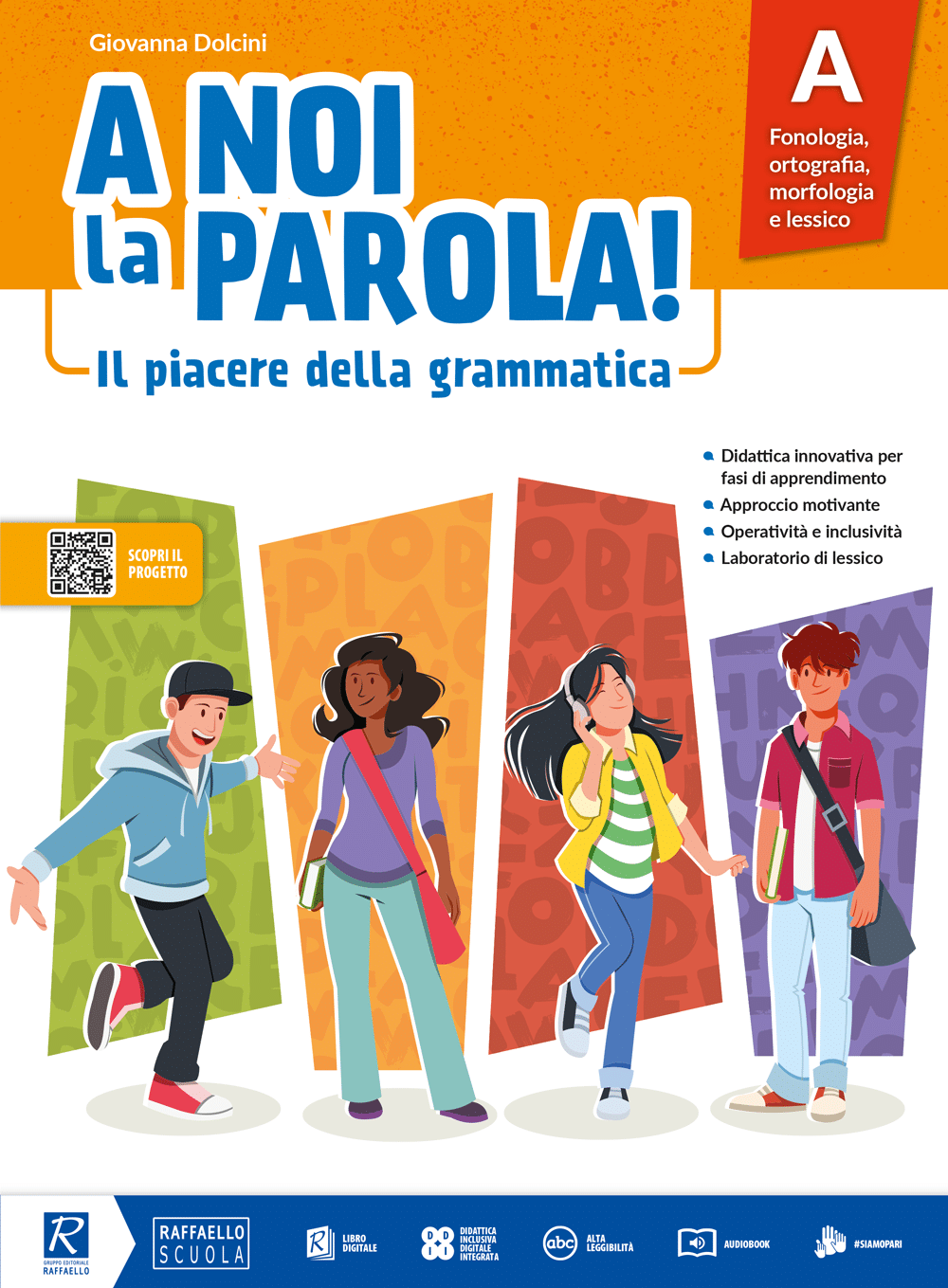 A noi la parola! è un corso di grammatica italiana per la scuola Secondaria di primo grado che pone al centro studentesse e studenti, con le loro esperienze, il loro linguaggio, le loro modalità di interazione. L’approccio inclusivo e motivante è pensato per aumentare il grado di coinvolgimento ad ogni livello, attraverso una didattica innovativa per fasi di apprendimento, basata su una metodologia consolidata e funzionale alla messa in opera della didattica per competenze.
