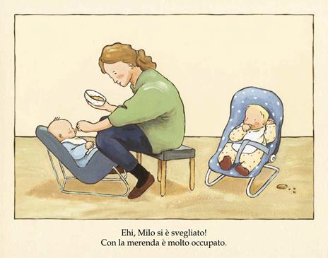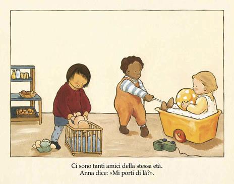 Quando si passa la giornata lontani l’uno dall’altro, è bello raccontarsela. Ma quando si è molto piccoli, come Milo, o un po’ più grandi, come Anna, non si hanno ancora le parole per parlarne. A più tardi! è un libro per raccontare attraverso immagini e parole rassicuranti, i grandi baci della mattina, i giocattoli, i compagni, la pittura, la pappa, le pipì, il sonnellino, i litigi, le coccole, la stanchezza della sera e… la felicità di ritrovarsi! Età di lettura: da 2 anni.