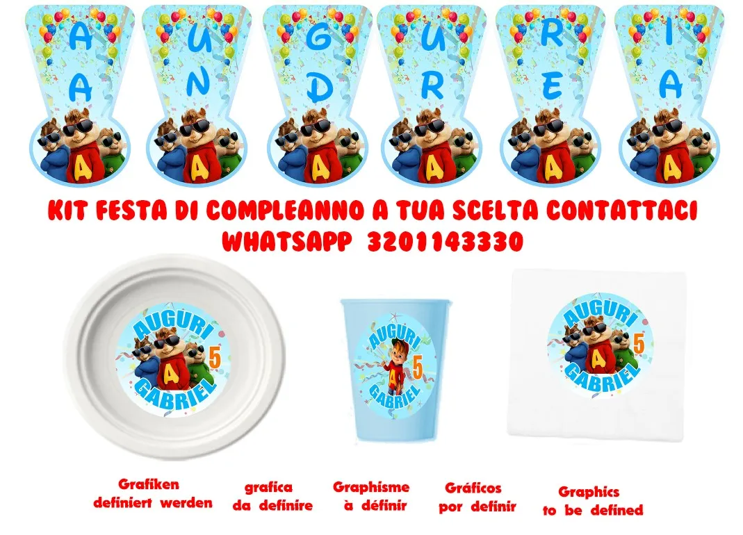 Immagini da definire a tua scelta. Contattami. TRASFORMA LA SUA FESTA IN UN MOMENTO PERFETTO! Kit comprensivo di tutto il necessario per un party senza paragoni! 1 Festone Auguri 8 Bicchieri 16 Tovaglioli 8 Piatti Un fantastico set per decorare del tema scelto la festa COMPRA IL KIT FESTA PER RENDERE UNICA LA TUA FESTA! Personalizza i tuoi eventi, che sia un battesimo, una nascita, un compleanno, un matrimonio utilizzando i nostri prodotti così da dare originalità e unicità al tuo party, sorprendi i tuoi invitati con i nostri prodotti. E C O N O M I C O, S…