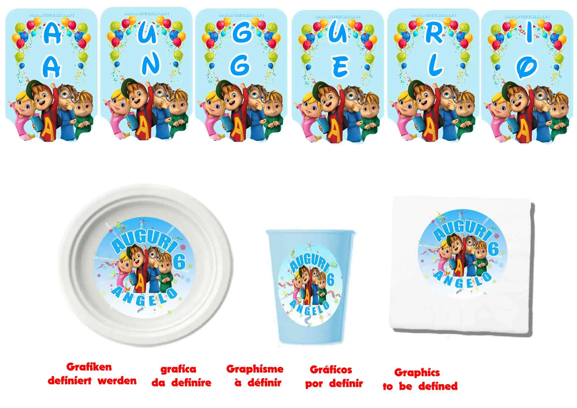 Immagini da definire a tua scelta. TRASFORMA LA SUA FESTA IN UN MOMENTO PERFETTO! Kit comprensivo di tutto il necessario per un party senza paragoni! 1 Festone Auguri 8 Bicchieri 8 Tovaglioli 8 Piatti (Ø 18 cm) per allestimento o cibi secchi Un fantastico set per decorare del tema scelto la festa COMPRA IL KIT FESTA PER RENDERE UNICA LA TUA FESTA! Personalizza i tuoi eventi, che sia un battesimo, una nascita, un compleanno, un matrimonio utilizzando i nostri prodotti così da dare originalità e unicità al tuo party, sorprendi i tuoi invitati con i nostri prodotti. E C O…