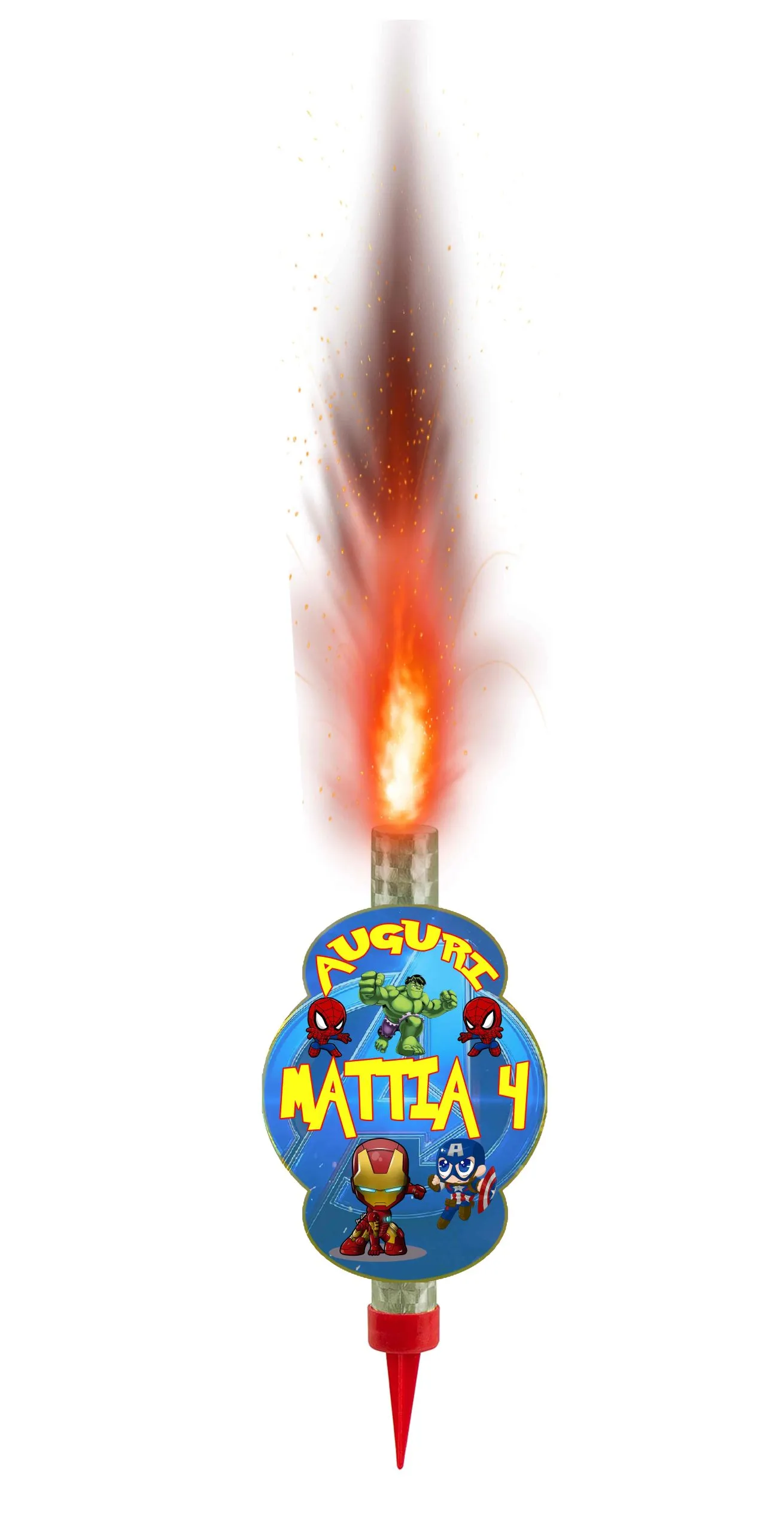 Avengers and friends Candela fontana luminosa per torta Fiaccola Fontana da uso interno o esterno Cat. 1 (K1) per colorare la festa del tuo compleanno effetto fontana, si spegne da sola