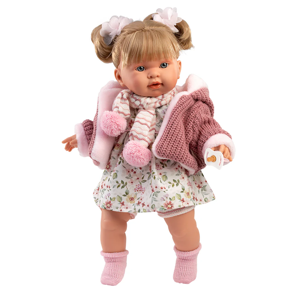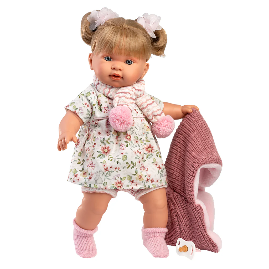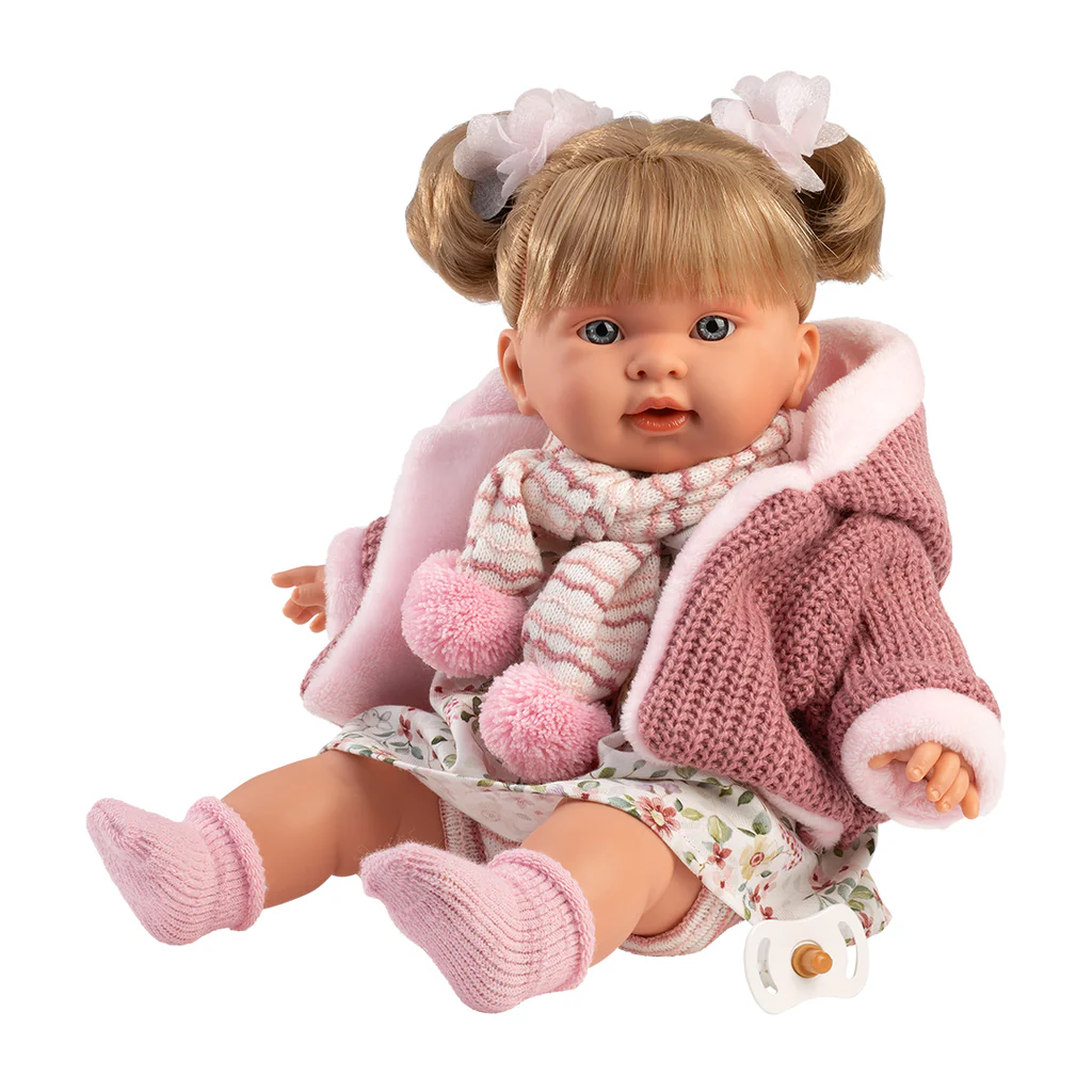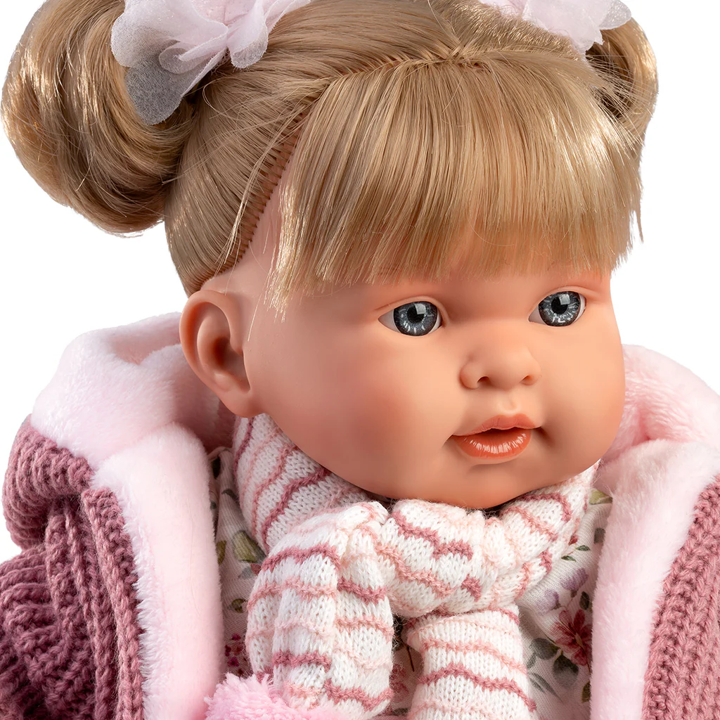 Alexandra è orgogliosa del proprio look, ed è pronta per giocare in compagnia della sua nuova amica. Capelli biondi e uno sguardo simpatico da furbetta. I codini raccolti da due fiocchi floreali e per affrontare l0inverno sciarpa e giacca. Realizzata dalle sapienti mani degli artigiani Llorens. Ogni bambola è coccolata impiegando solo materiali di prima qualità, impreziosite dagli abiti realizzati da importanti produttori dell’abbigliamento per bambini, curati con la stessa cura e amore.