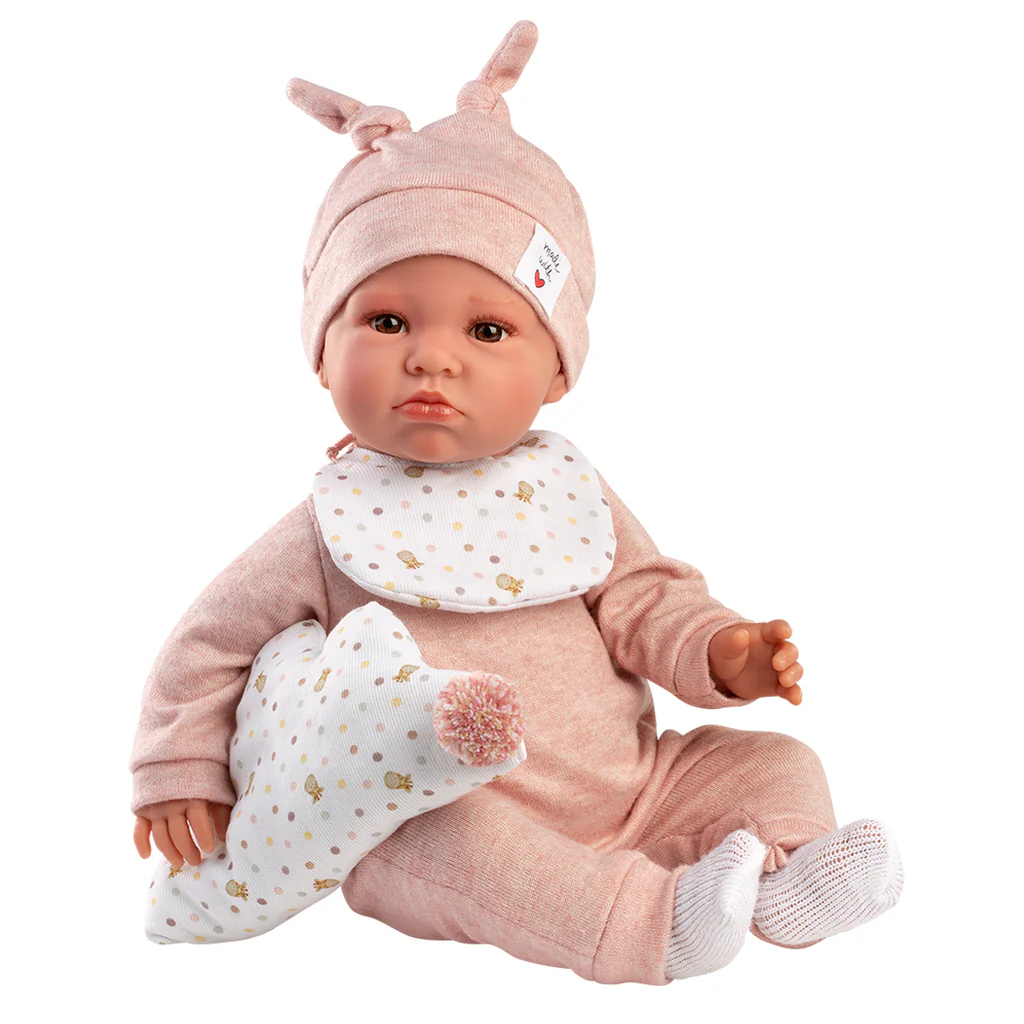 Luna è una babola di 45 cm, il peso e l’espressione ricordano un neonato vero. Occhi castani profondi e intensi e guanciotte paffute da baciare e baciare. Realizzata dalle sapienti mani degli artigiani Llorens. Ogni bambola è coccolata impiegando solo materiali di prima qualità, impreziosite dagli abiti realizzati da importanti produttori dell’abbigliamento per bambini, curati con la stessa cura e amore.