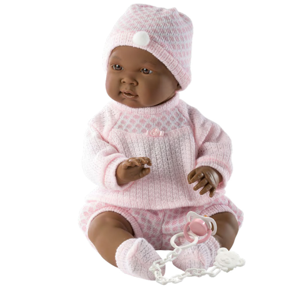 Una dolce bambolotta dallo sguardo curioso, lo sguardo di chi vuole scoprire il mondo. Un pigiamino rosa con un cappellino molto comodo. Nahia aspetta la sua nuova mamma. un visino paffuto che aspetta tanti tanti bacini. Realizzata dalle sapienti mani degli artigiani Llorens e impreziosita dagli abiti realizzati da importanti produttori dell’abbigliamento per bambini, curati con la stessa attenzione e amore.