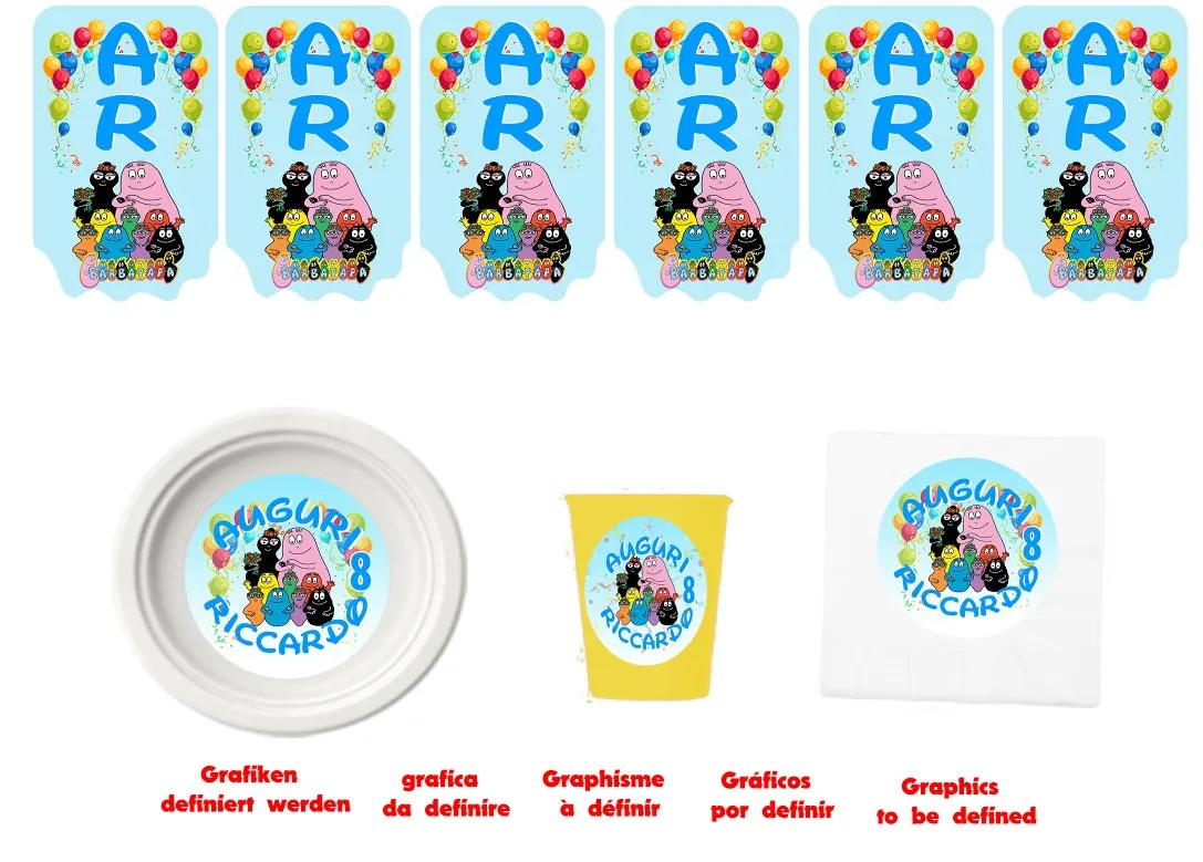 Barbapapa and friends Kit Compleanno TRASFORMA LA SUA FESTA IN UN MOMENTO PERFETTO! COMPRA IL Kit Compleanno PER RENDERE UNICA LA TUA FESTA! Personalizza i tuoi eventi, che sia un battesimo, una nascita, un compleanno, un matrimonio utilizzando i nostri prodotti così da dare originalità e unicità al tuo party, sorprendi i tuoi invitati con i nostri prodotti. E C O N O M I C O, S E M P L I C E , V E L O C E. REALIZZATO CON GRAFICA PERSONALIZZATA. PER UNA FESTA UNICA!