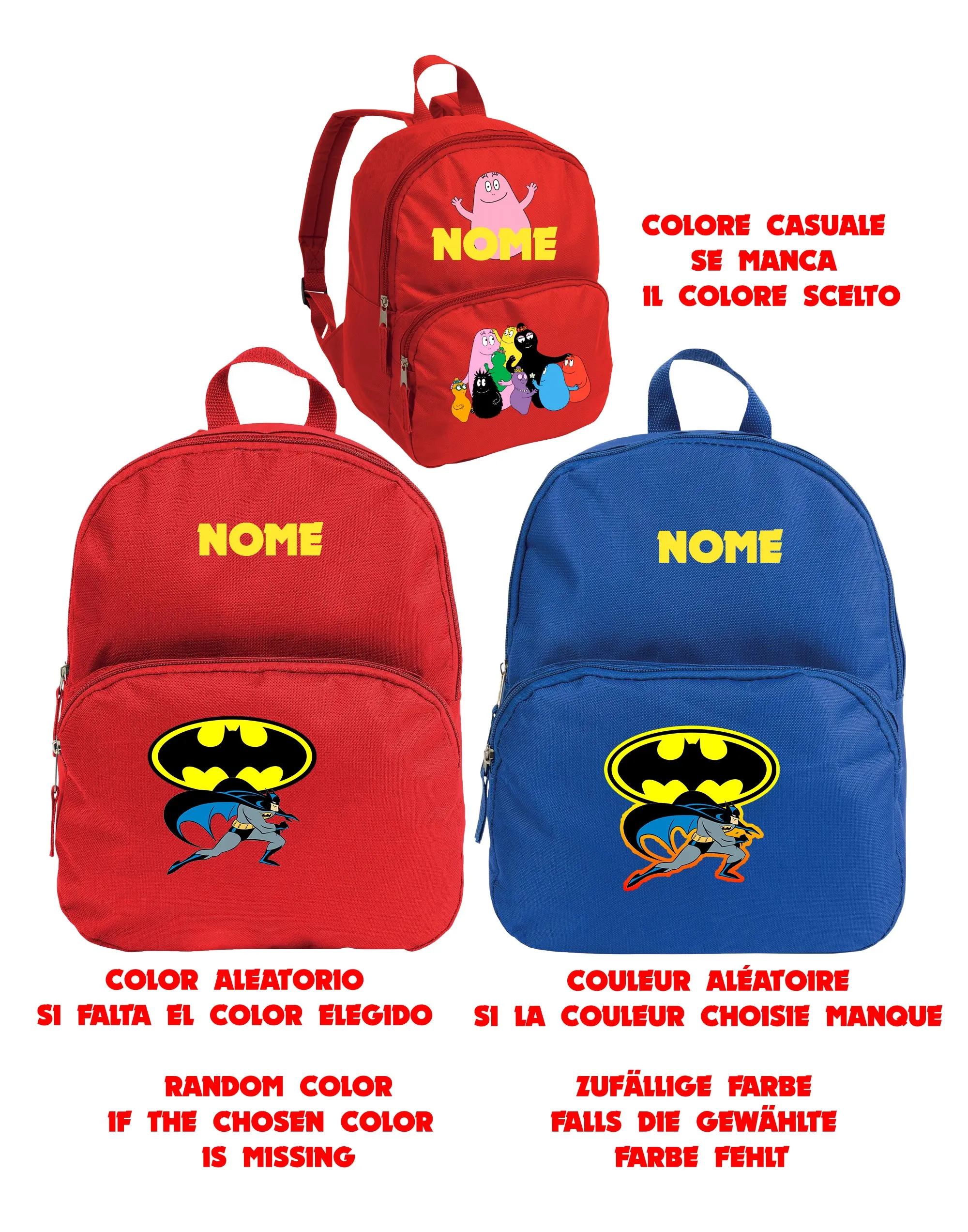 Batman and friends Zaino asilo con compartimento principale regolabile con zip, tasca frontale con zip e gancio per presa a mano. Dimensioni 33x26x13 cm. SCEGLI IL PRODOTTO CHE PREFERISCI, SELEZIONA LE SPECIFICHE DAI MENÙ A TENDINA E CLICCA SU COMPRALO SUBITO. CONTROLLA L’ORDINE EFFETTUATO E CLICCA SU ACQUISTA. UNA VOLTA ACQUISTATO IL PRODOTTO, PROCEDI AL PAGAMENTO. IL PRODOTTO VERRÀ SPEDITO CON CORRIERE ESPRESSO ENTRO 36H LAVORATIVE DALLA RICEZIONE DEL PAGAMENTO. SI PREGA DI INSERIRE NELLE NOTE UN RECAPITO TELEFONICO PER IL CORRIERE GRAZIE!!! Abilita JavaScript nel browser per completare questo modulo.Prodotto personalizzato a richiesta del cliente *Hai bisogno di una…