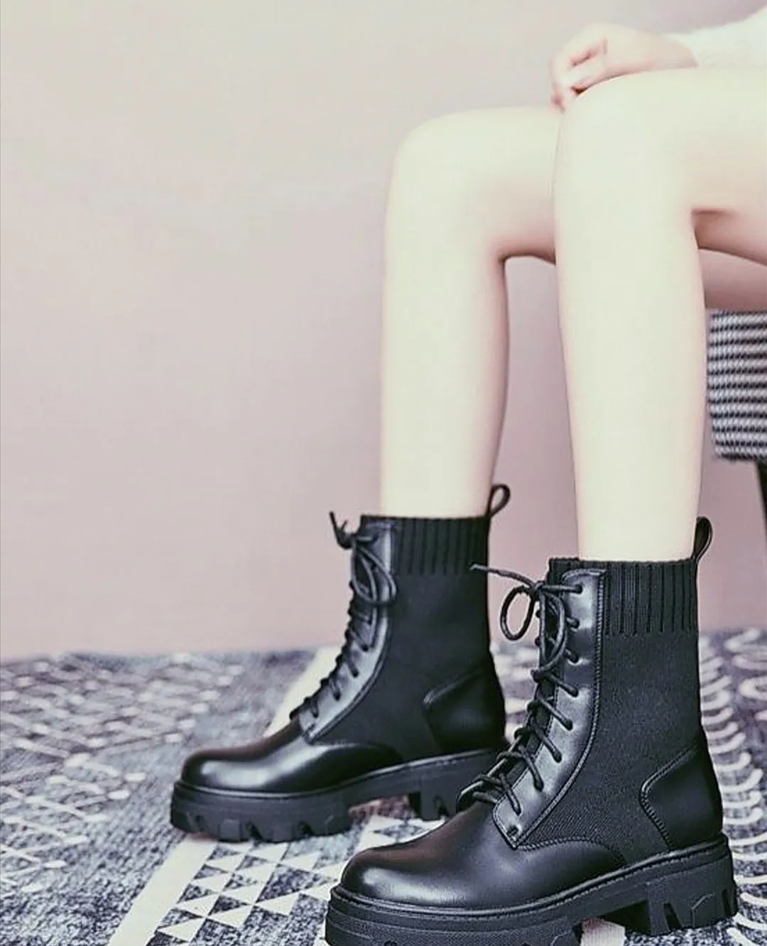 Bikers modello a calza elasticizzata, con laccetti