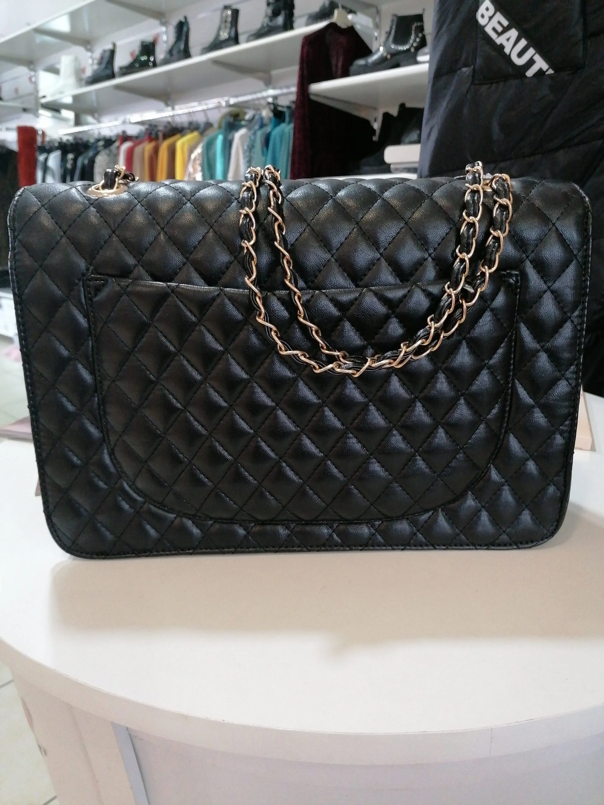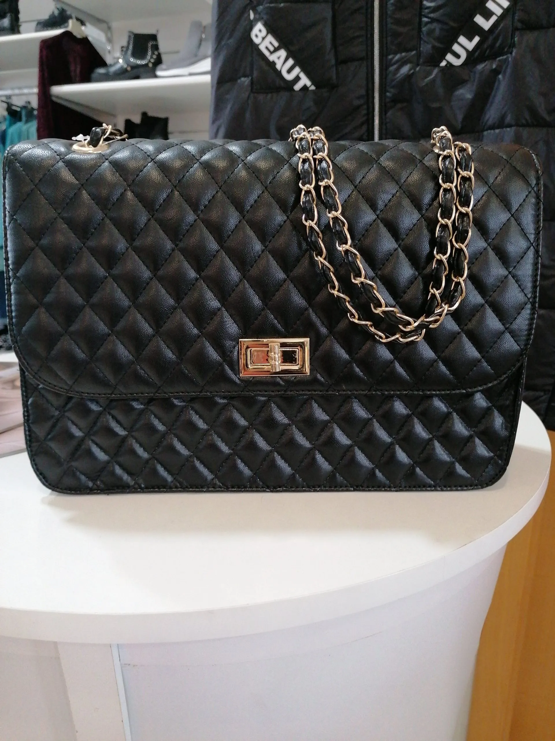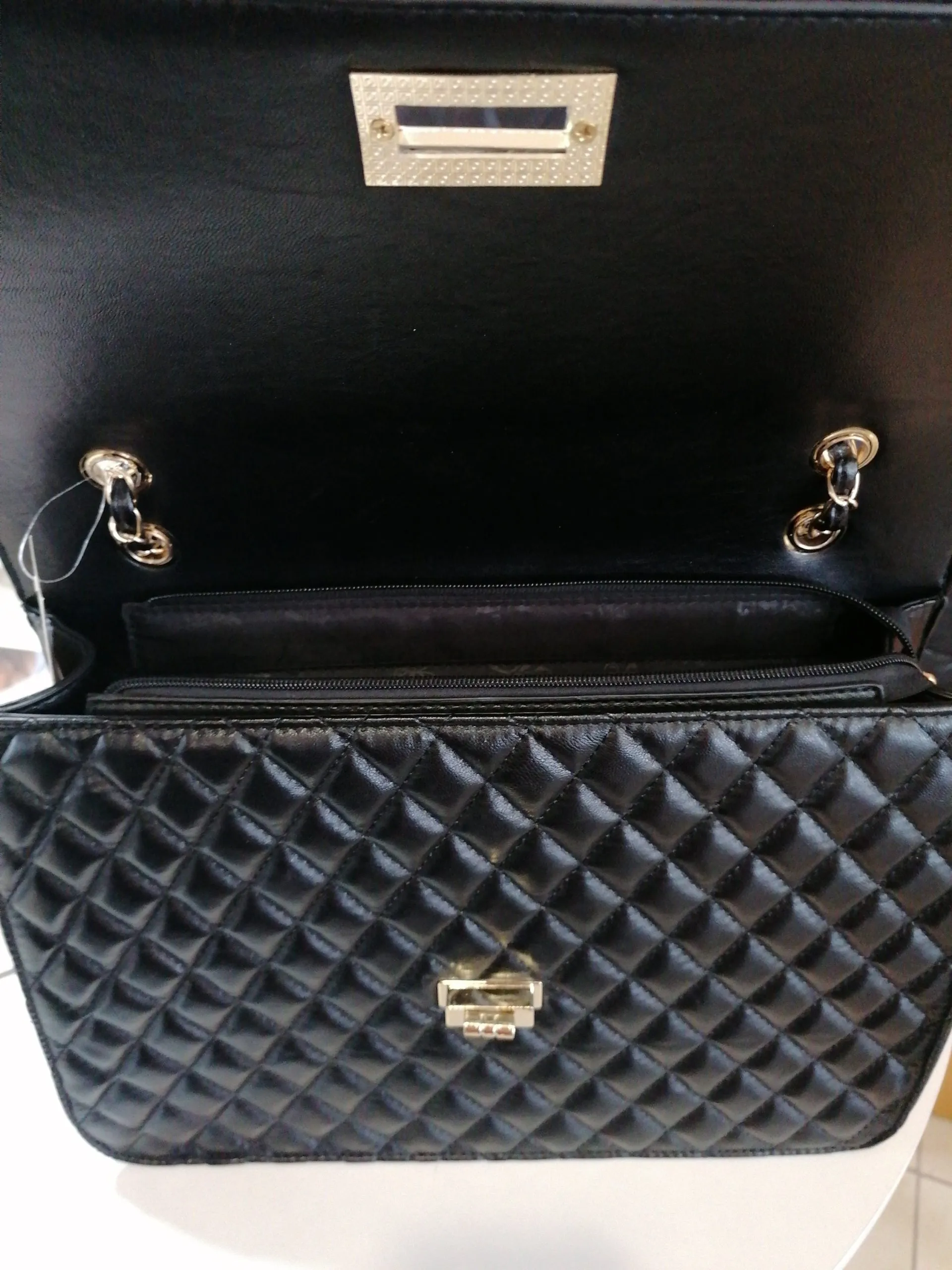 Borsa tracolla, trapuntata, nera, modello rigido, misure 34x23x11