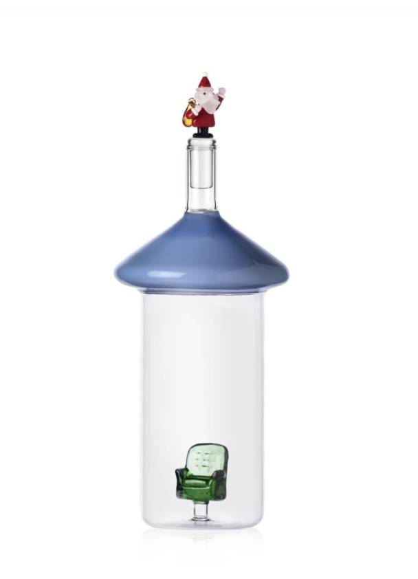 Christmas Tales è la collezione che con la leggerezza dei materiali ci riporta agli echi fantastici del Natale. E anche questa bottiglia ci racconta con simpatica ironia l’arrivo di Babbo Natale, come tradizione vuole, attraverso i camini delle nostre case. Rallegra le tavole e i nostri ambienti la collezione disegnata da Alessandra Baldereschi. Brocche, bottiglie e bicchieri accanto ad oggetti decorativi, leggeri alla vista e al tatto, ma robusti perché realizzati in borosilicato. Lavorati a mano e modellati a lume.