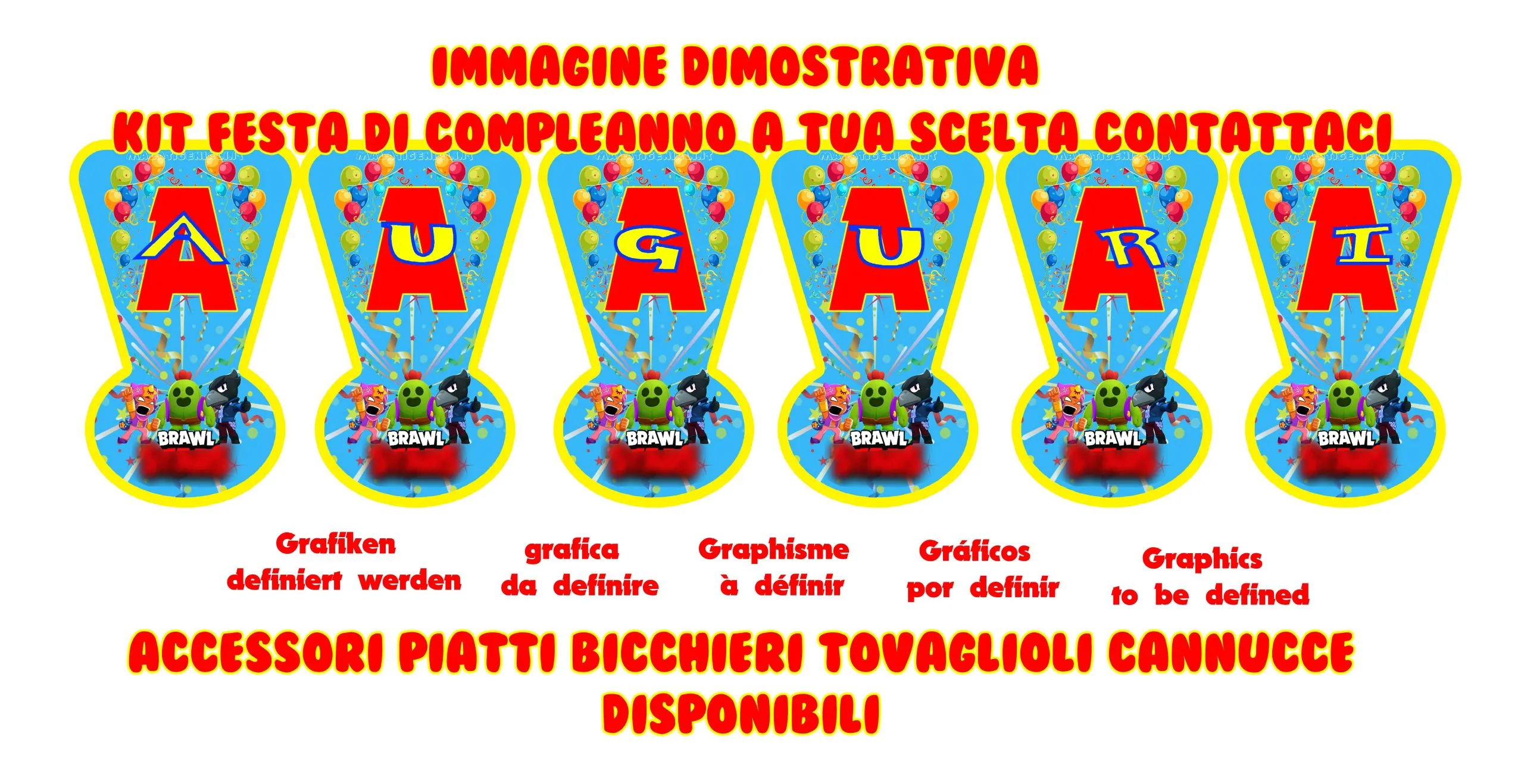Brawl and friends Festone Personalizzabile TRASFORMA LA SUA FESTA IN UN MOMENTO PERFETTO! Personalizza i tuoi eventi, che sia un battesimo, una nascita, un compleanno, un matrimonio utilizzando i nostri prodotti così da dare originalità e unicità al tuo party, sorprendi i tuoi invitati con i nostri prodotti. E C O N O M I C O, S E M P L I C E , V E L O C E. REALIZZATO CON GRAFICA PERSONALIZZATA. PER UNA FESTA UNICA!