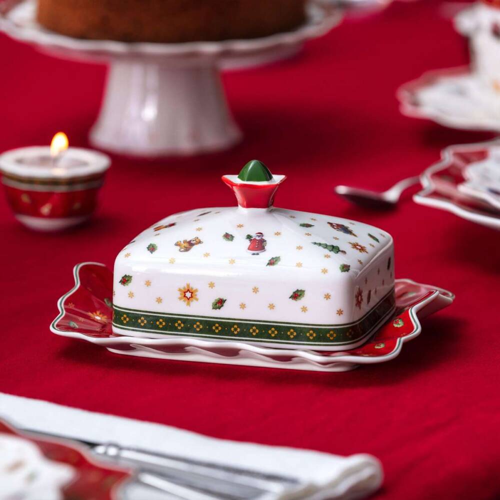 Pezzi speciali, per le tavole eleganti, perché anche la burriera trasforma, impreziosisce i momenti trascorsi insieme. Un oggetto che risulterà utile anche per un patè, per le sorprese culinarie. Ogni anno il servizio Toy’s Delight si arricchisce di elementi, con infinite possibilità di ampliamento. Lo spirito naif che caratterizza l’intera collezione, veste la tavola natalizia di calda eleganza.