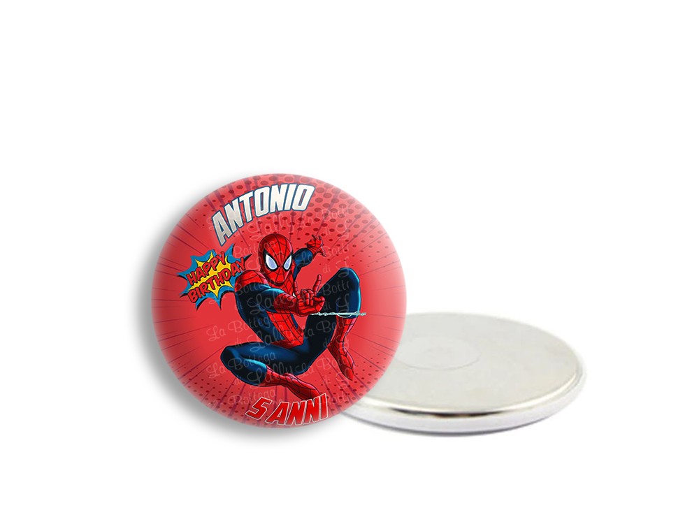 Calamite rotonde di metallo Ø 37mm personalizzabili con qualsiasi personaggio o soggetto e con nome ed anni del festeggiato/a.