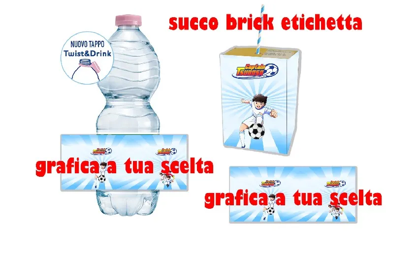 Capitan Tsubasa Etichetta per succhi di frutta in brick e/o bottiglia vetro ,bottiglia 1,5lt e bottiglia 500ml