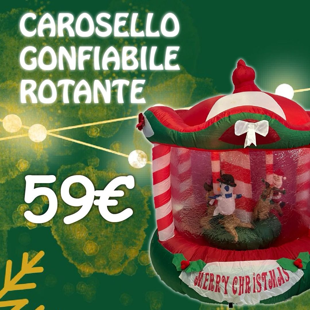 Realizzato con tessuto spalmato resinato superleggero è completo di motore a chiocciola a basso voltaggio per la vostra sicurezza. Dotato di illuminazione e sistema elettronico che ricrea il movimento tipico della giostra, con soggetti a tema natalizio, dona quel tocco in più di dinamismo alle tue scenografie natalizie.