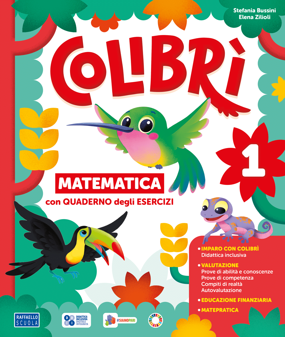 MATEMATICA – In classe 1a, a ogni numero viene assegnato uno spazio congruo di presentazione e consolidamento dell’associazione stabile con la quantità. A più riprese vengono offerti esercizi e giochi per favorire l’esplorazione grafico-aritmetica del numero e per un primo approccio al problema aritmetico. Le pagine laboratoriali MATEPRATICA, con agganci interdisciplinari (STEAM, CODING, problem solving) e le pagine Educazione finanziaria rendono efficace il percorso di apprendimento agganciandosi alle più recenti indicazioni del MIM. La stessa modalità didattica viene mantenuta nelle classi successive, ma con crescenti complessità e articolazione dei contenuti. Grande rilevanza viene data all’acquisizione di una procedura ordinata per la risoluzione dei problemi e alla logica, in linea con la metodologia proposta dai quiz INVALSI. Gli eserciziari propongono nume-rose attività per potenziare e consolidare il ragionamento e il calcolo matematico.
