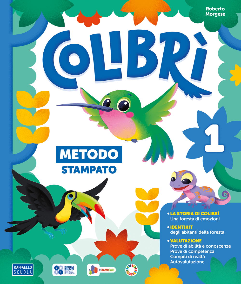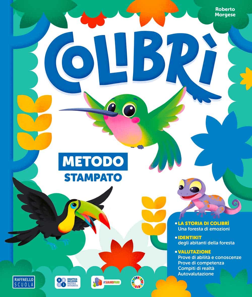 METODO (disponibile in doppia versione) – La storia-guida, che fa da sfondo narrativo all’apprendimento della letto-scrittura, è raccolta nel volume La storia di Colibrì disponi-bile per la classe. Colibrì guiderà bambine e bambini alla scoperta del segreto della Foresta, chiamando in gioco le emozioni e le Life skills. Il racconto ha un valore fortemente inclu-sivo e tematizza, attraverso l’accoglienza, l’accettazione e la collaborazione, il rispetto per l’ambiente e dei suoi abitanti in chiave ecologica. Il metodo fonosillabico dedica sei pagine all’identificazione, alla lettura e alla scrittura di ogni fonema collegandosi al QUADERNO DI SCRITTURA. Al termine sono presenti pagine di verifica delle abilità, conoscenze e compe-tenze. Grazie agli identikit digitali si può esplorare una vera foresta con i suoi abitanti, at-traverso video, giochi e approfondimenti.
