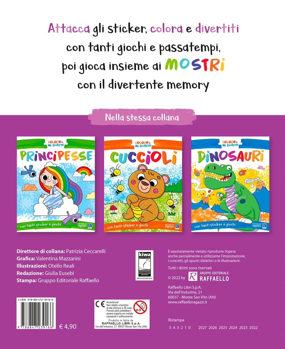 Attacca gli sticker, colora e divertiti con tanti giochi e passatempi, poi gioca insieme ai mostri con il divertente memory.