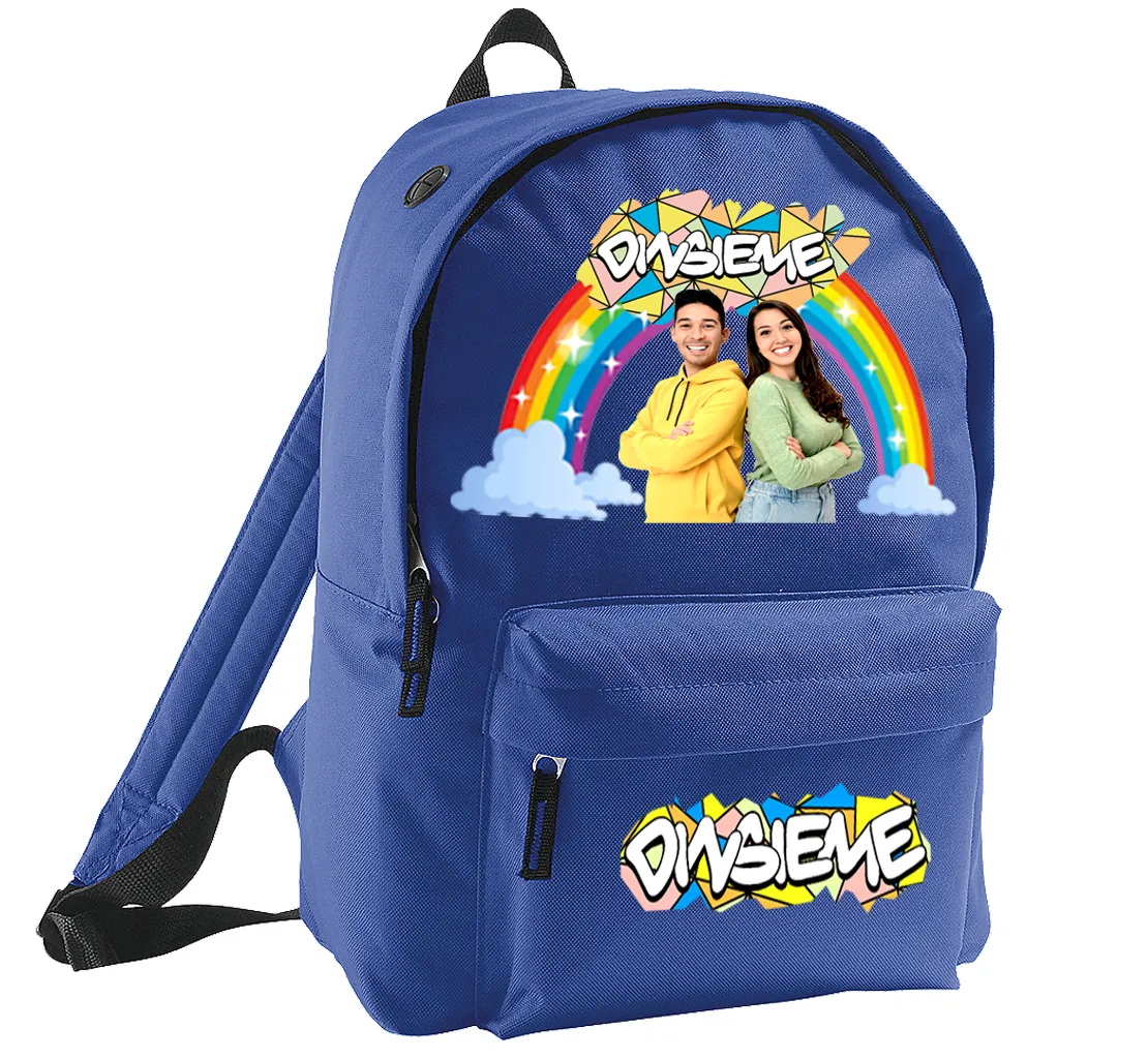 Zaino Scuola DINSIEME Spessore zaino non RINFORZATO!!!!!!! Ampio scomparto centrale con zip doppio cursore Tasca frontale con zip Passacavo per auricolari Bretelle regolabili imbottite e rinforzate Dorso imbottito Dimensioni cm. 40 X 28 X15