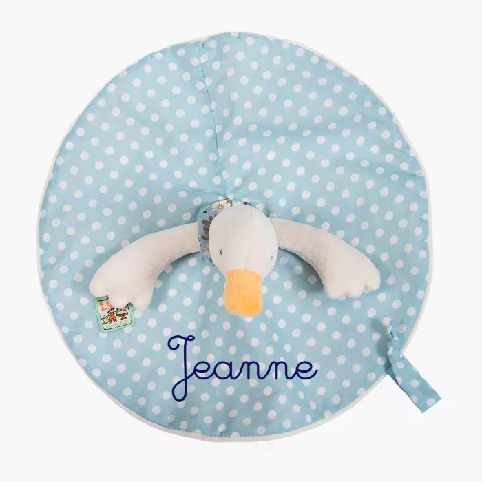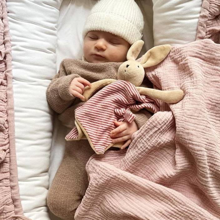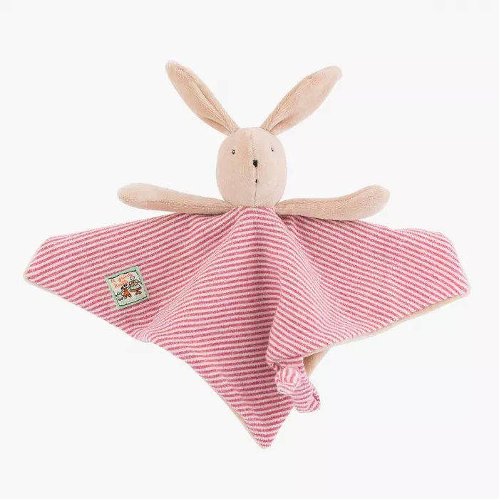 Ecco i doudou della collezione La Grande Famille: il coniglietto Sylvain, nella sua tutina in pile a righe, Nini la topolina con il vestitino di cotone rosso a pois e la piccola oca Jeanne in uno stupendo azzurro a pois bianchi. Il velluto con cui sono foderati il loro vestitini li rende particolarmente morbidi, sono facili da afferrare dalle manine dei più piccoli e la clip per il ciuccio li trasformerà nel migliore amico dei più piccini.
