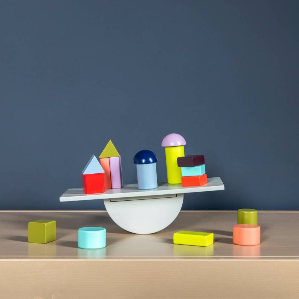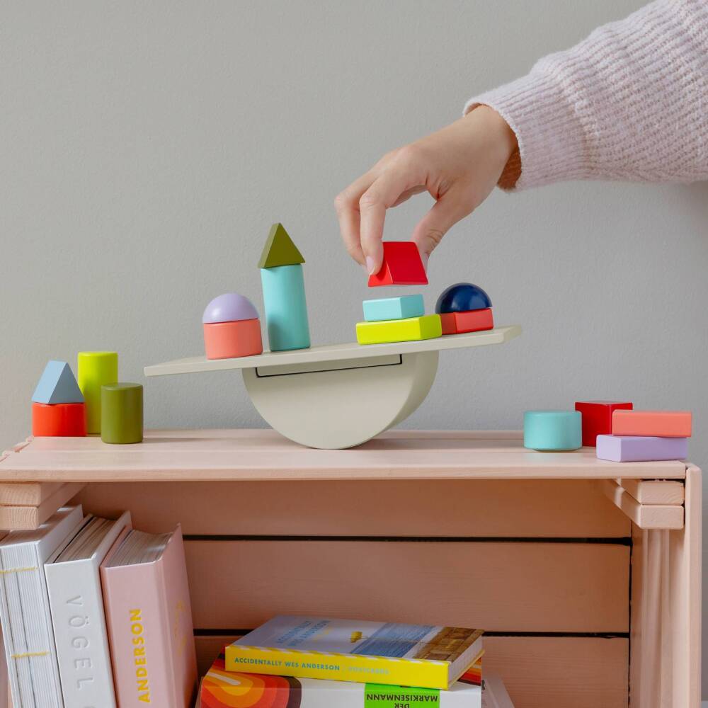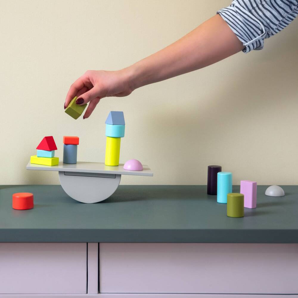 Contenuto: Altalena in legno | 24 mattoncini | sacchetto di stoffa | istruzioni di gioco