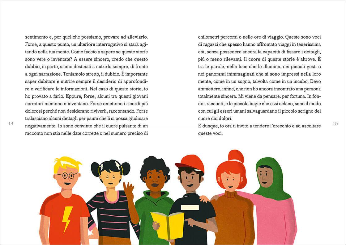 Attraverso i racconti dei giovani protagonisti possiamo ripercorrere la storia dei diversi flussi migratori che, negli ultimi anni, hanno interessato il nostro Paese e provare a comprendere il mondo nuovo che di fronte a noi si dischiude. Un racconto corale di storie vere che aiuterà studenti, docenti e genitori a orientarsi in questa nuova geografia, a riconoscersi nell’altro e ad assaporare la ricchezza della differenza.