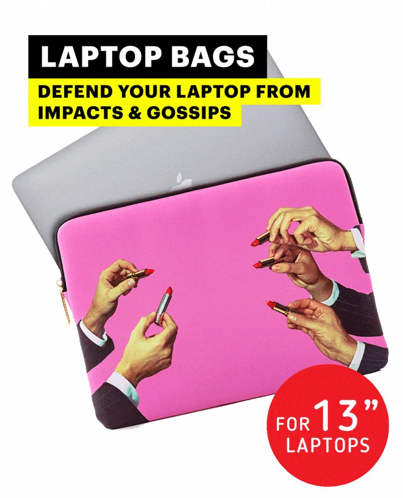 Difendi il tuo laptop da urti e pettegolezzi con queste custodie da 13 pollici super colorata, progettate da TOILETPAPER. Lipstick è in versione rosa e nero. Quale è il tuo colore? Sfacciato, sinuoso e molto pop: l’accessorio perfetto per catturare l’attenzione, sempre con stile.