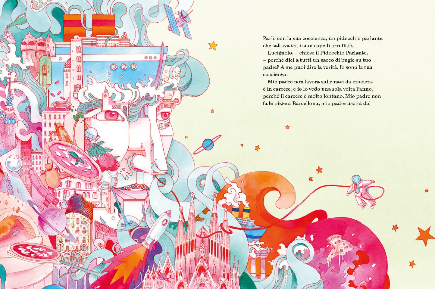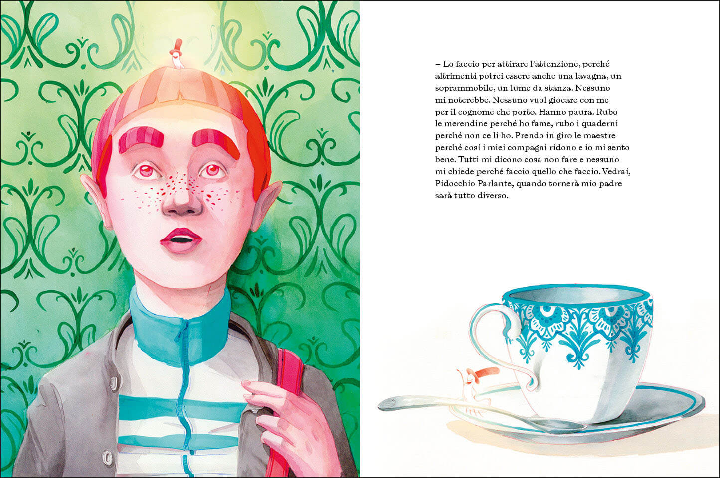 Espulso dalla scuola dopo aver preso a botte un compagno, Lucignolo si aggira da solo per il quartiere napoletano, cedendo alle tentazioni di due loschi criminali, il gatto e la volpe. A differenza di quella del suo più fortunato compagno di legno, la coscienza del ragazzo ha però le sembianze di un pidocchio, e non ci sono padri a cercarlo. Lucignolo è un asino, un bullo per necessità, lasciato solo da un sistema che lo vuole abbandonato al suo destino alle pendici del Vesuvio… “Ma le matite spezzate colorano ancora, e certe volte gli asini si trasformano in ciucci volanti“. Un racconto per adulti e per bambini, capace di incantare e far pensare.