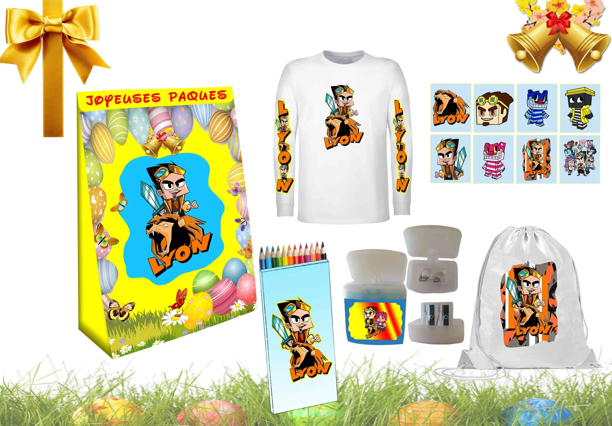Lyon et ses amis cadeau de Joyeuses Pâques Contenu: T-shirt, boîte de couleurs, taille-crayon, sac, autocollants adhésifs. NOUS UTILISONS UNIQUEMENT DES ARTICLES FABRIQUÉS EN ITALIE ET D’EXCELLENTE QUALITÉ. CHOISISSEZ LE PRODUIT QUE VOUS PRÉFÉREZ, SÉLECTIONNEZ LES SPÉCIFICATIONS DANS LES MENUS DÉROULANTS ET CLIQUEZ SUR ACHETER MAINTENANT. VÉRIFIEZ LA COMMANDE PASSÉE ET CLIQUEZ SUR ACHETER. UNE FOIS QUE VOUS AVEZ ACHETÉ LE PRODUIT, PROCÉDEZ AU PAIEMENT. LE PRODUIT SERA EXPÉDIÉ PAR COURRIER EXPRESS DANS LES 36 HEURES OUVRABLES À COMPTER DE LA RÉCEPTION DU PAIEMENT. VEUILLEZ INSÉRER UN NUMÉRO DE TÉLÉPHONE POUR LE COURRIER DANS LES NOTES MERCI!!! Paiements acceptésPayPal, Carte…