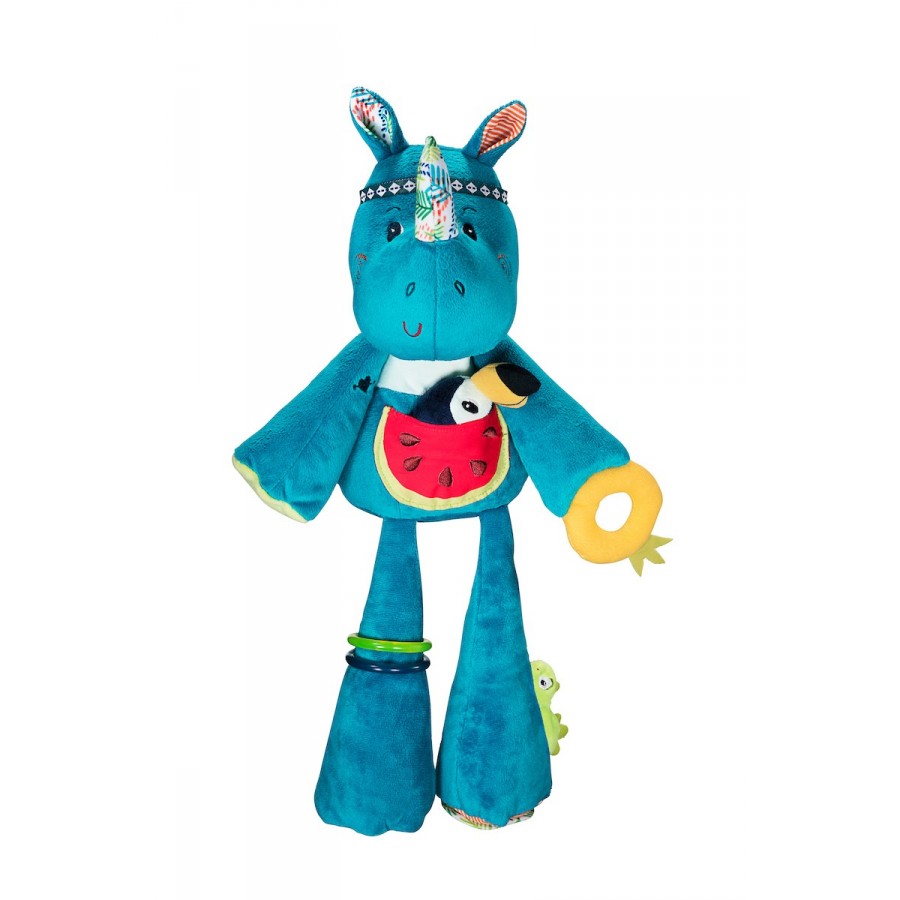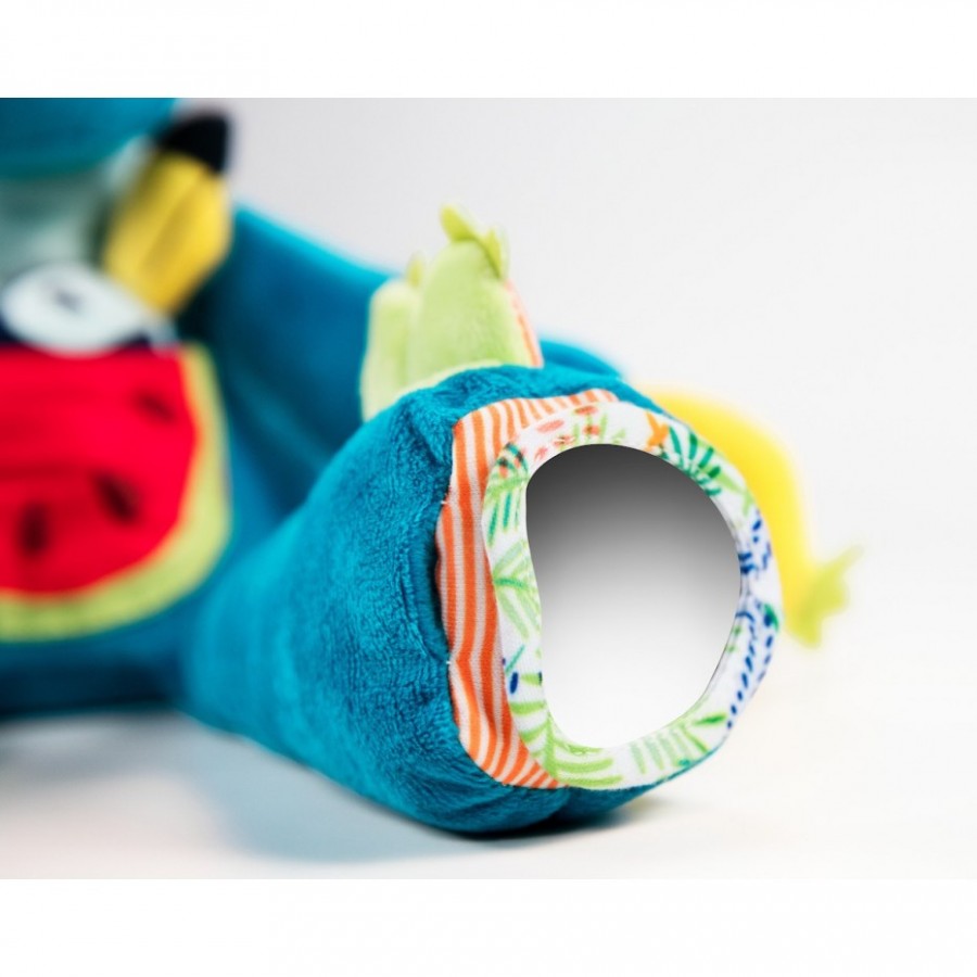 Un gioco attività versatile che stimola i sensi del tuo bambino masticando l’anello di dentizione, scoprendo suoni, cercando il tucano, il simpatico compagno di avventure di Marius, giocando a cucù nello specchietto e affinando le proprie abilità motorie fini con un anello a forma di ananas che entra esattamente nel naso di Marius…. Un mondo di attività divertenti per il tuo bambino. E quando è l’ora della nanna, Marius diventa il peluche preferito del tuo bambino.