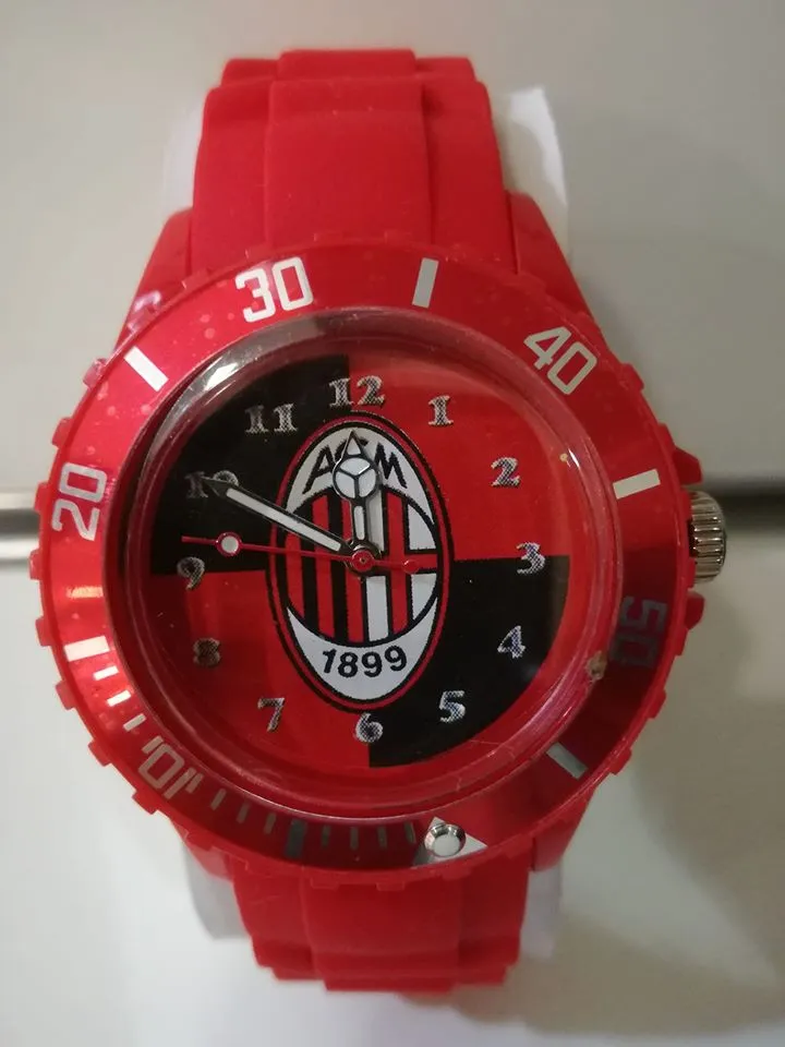 Orologio Milan EDIZIONE LIMITATA CINTURINO DI PLASTICA ANTIALLERGICA CASSA IN PLASTICA ANTIALLERGICA FONDELLO DI METALLO DIAMETRO 4 CENTIMETRI ALTEZZA 1,4 CENTIMETRI BATTERIA ALCALINA