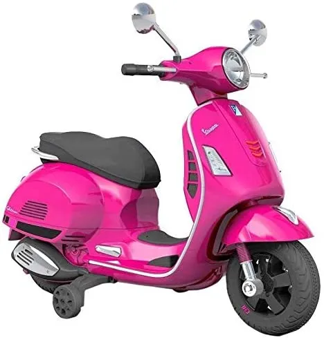 Moto Elettrica Piaggio per Bambini Vespa GTS Rotelle 12V luci LED Suoni ROSA