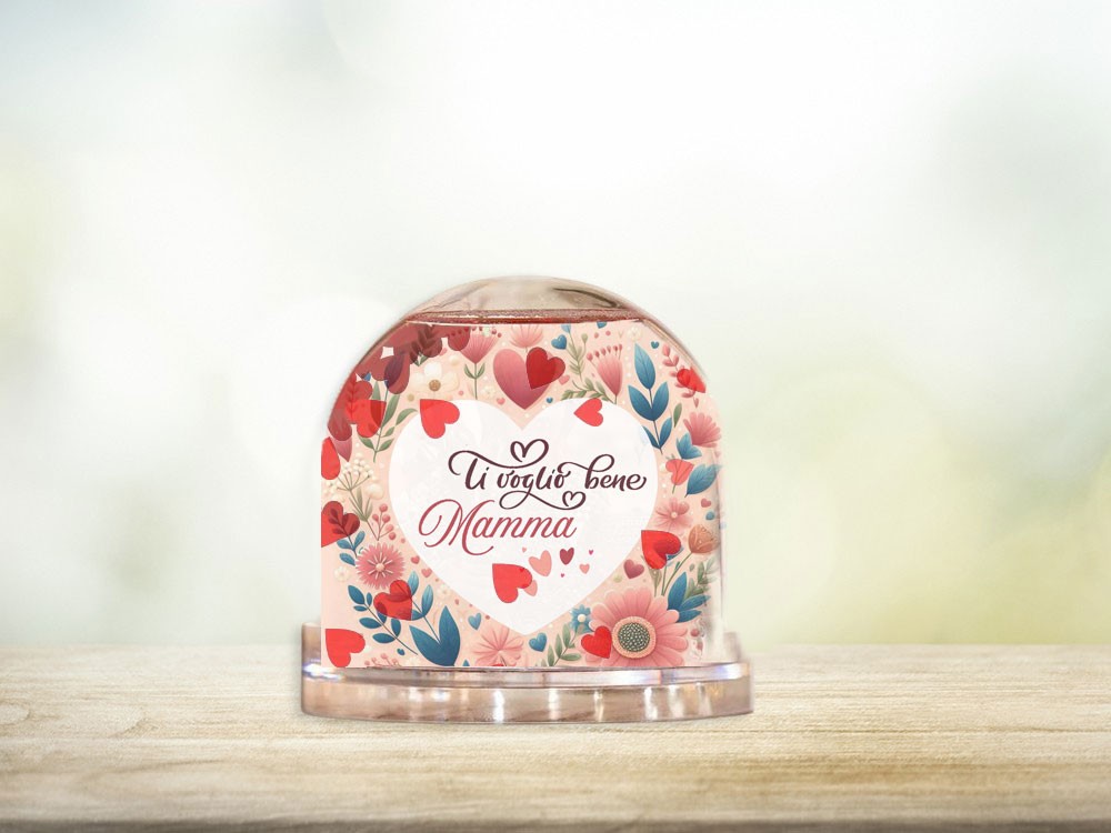 Un dolcissimo regalo per la Festa della Mamma: una raffinata palla di vetro che, agitandola, fa danzare teneri cuoricini scintillanti. Un pensiero speciale per dire “ti voglio bene” alla mamma.