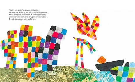 Pezzettino è in cerca della propria identità. È talmente piccolino, infatti, confronto ai suoi amici – tutti grandi e grossi, capaci di volare, nuotare, arrampicarsi – che si convince di essere un pezzetto di qualcun’altro. Così comincia una ricerca che, alla fine, lo porterà a esclamare al colmo dello stupore e della felicità: “Io sono me stesso!”.