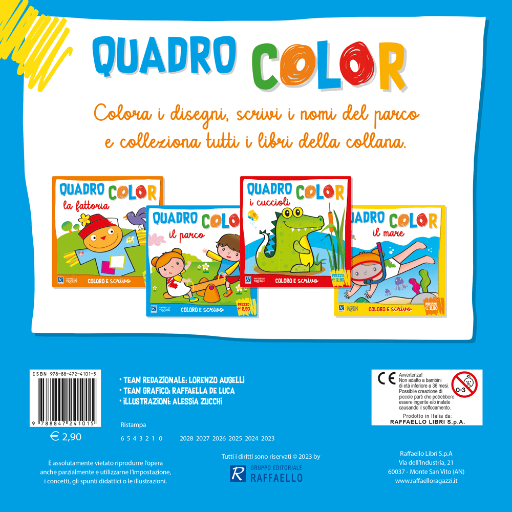 Colora i disegni e scrivi i nomi della Fattoria, del Mare, dei Cuccioli, del Parco.