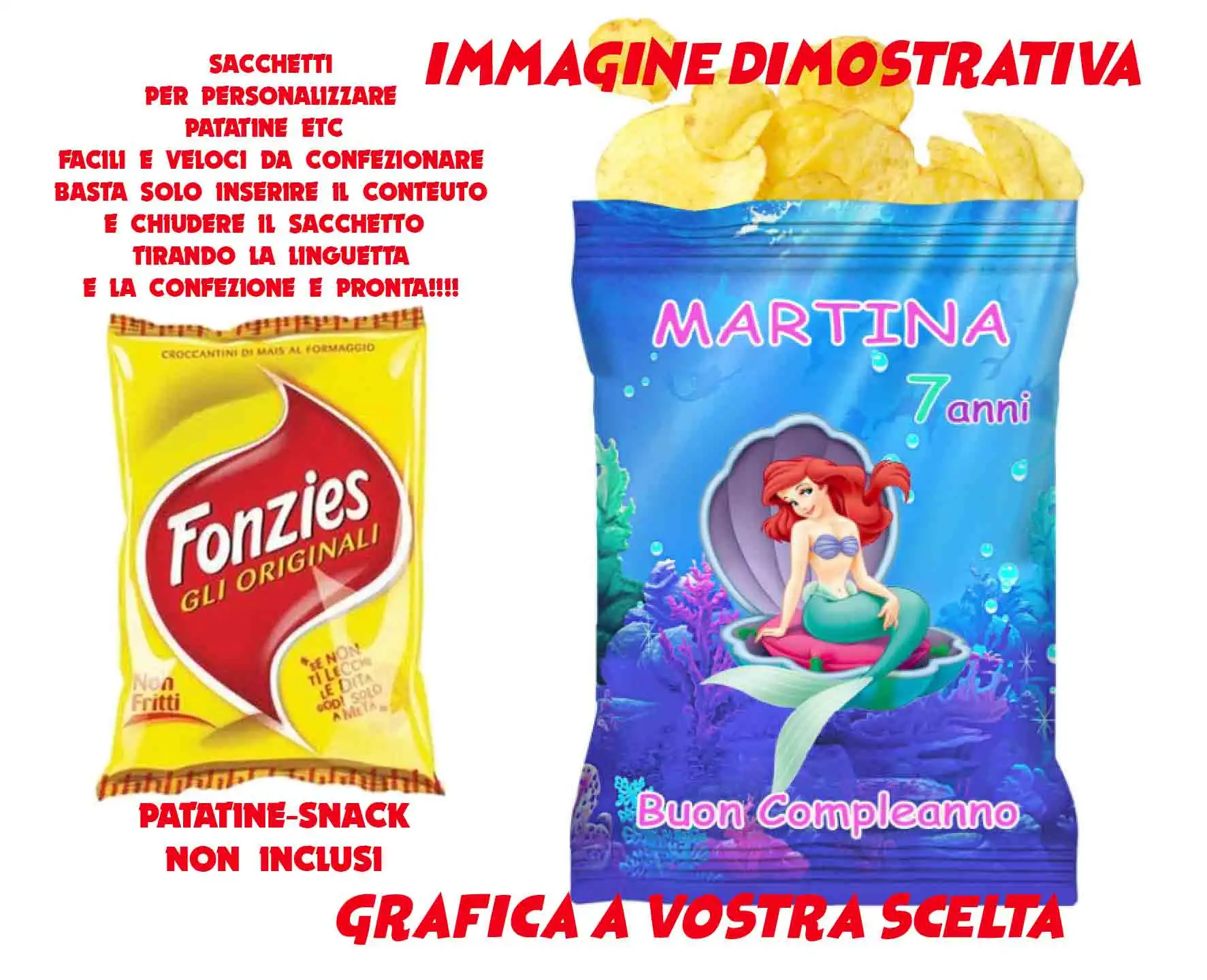 Sirenetta Ariel and friends sacchetti per patatine snack personalizzate