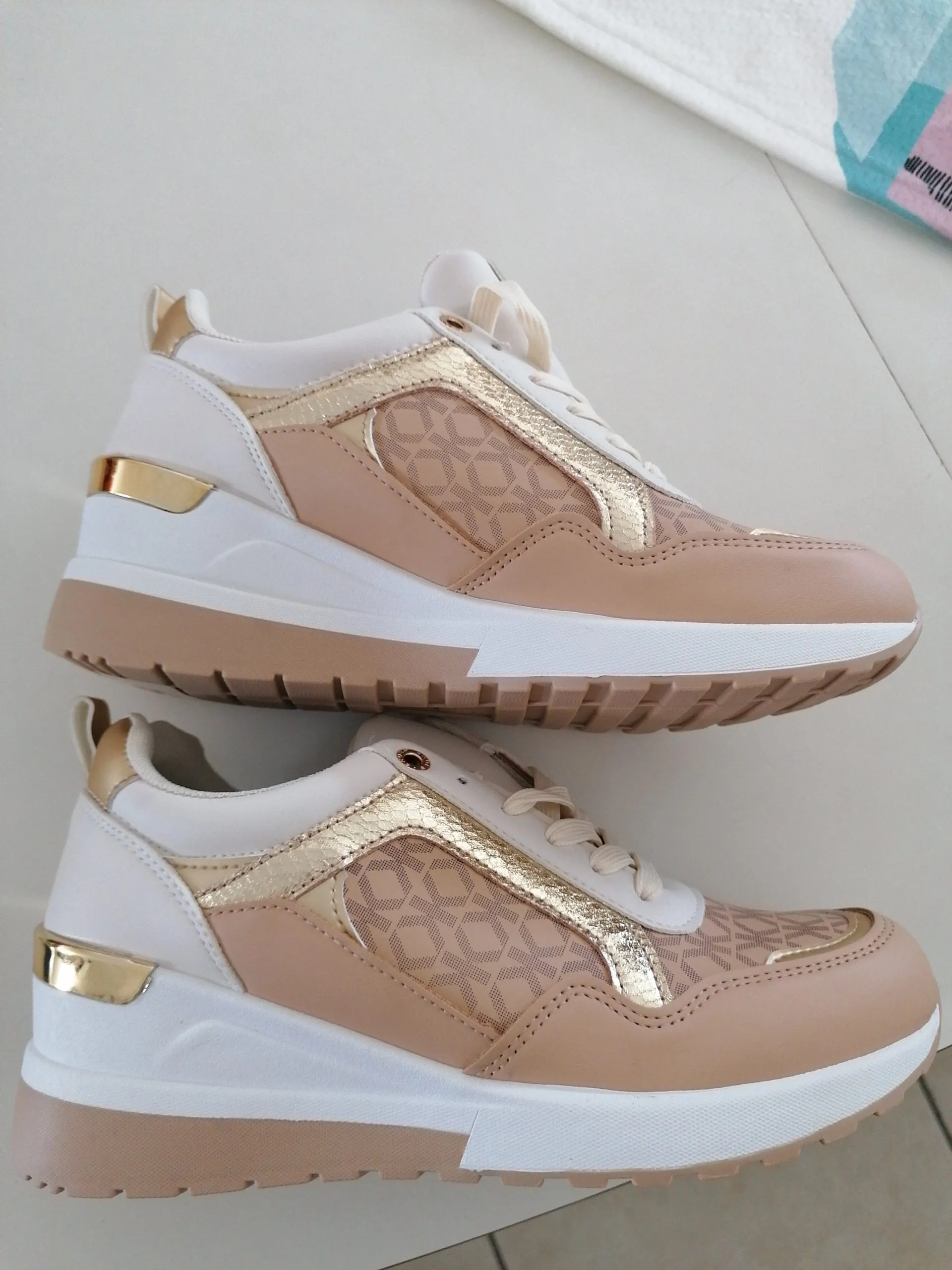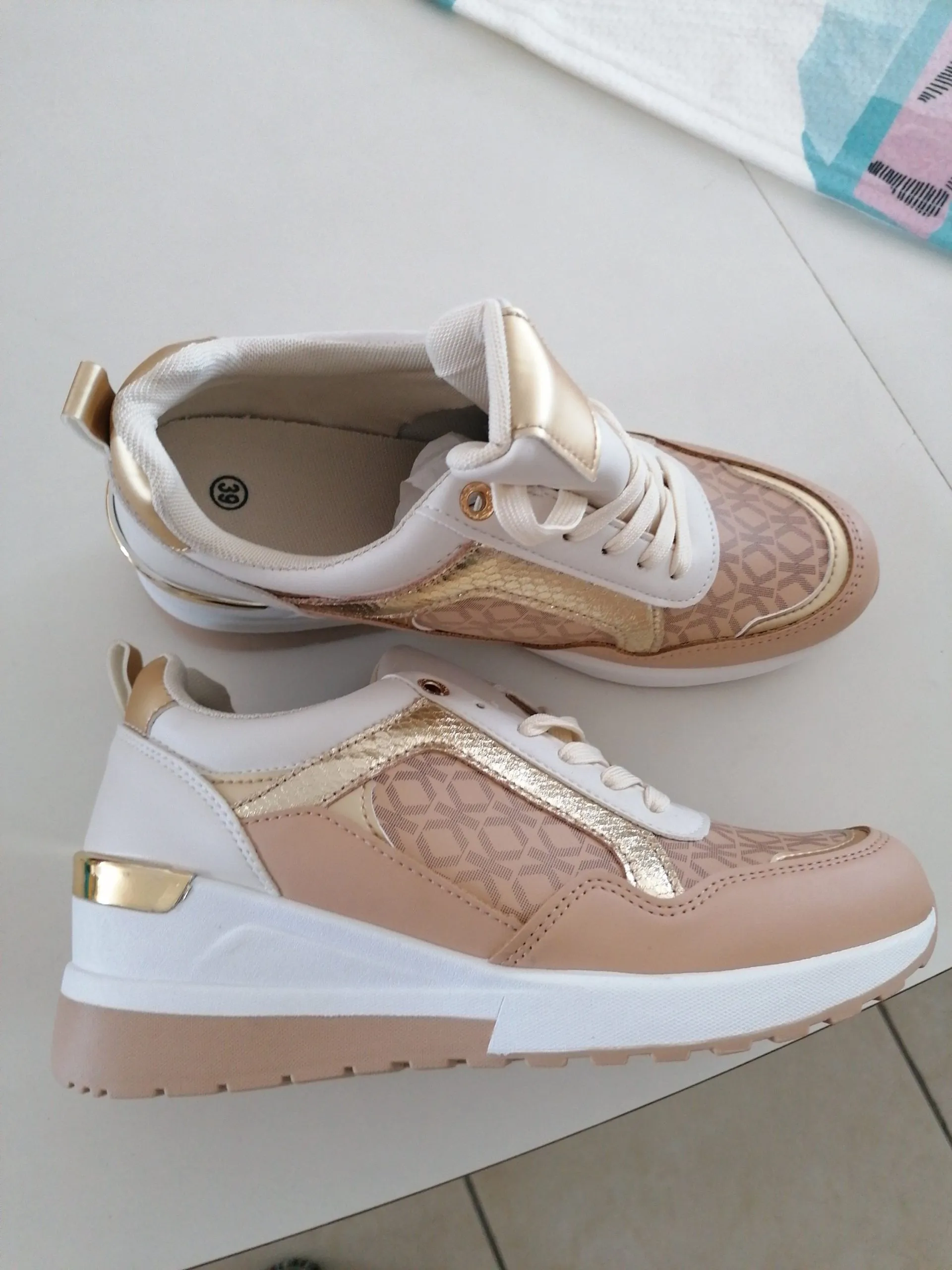 Una scarpa comoda, bella e luminosa Dettagli oro e beige Leggera