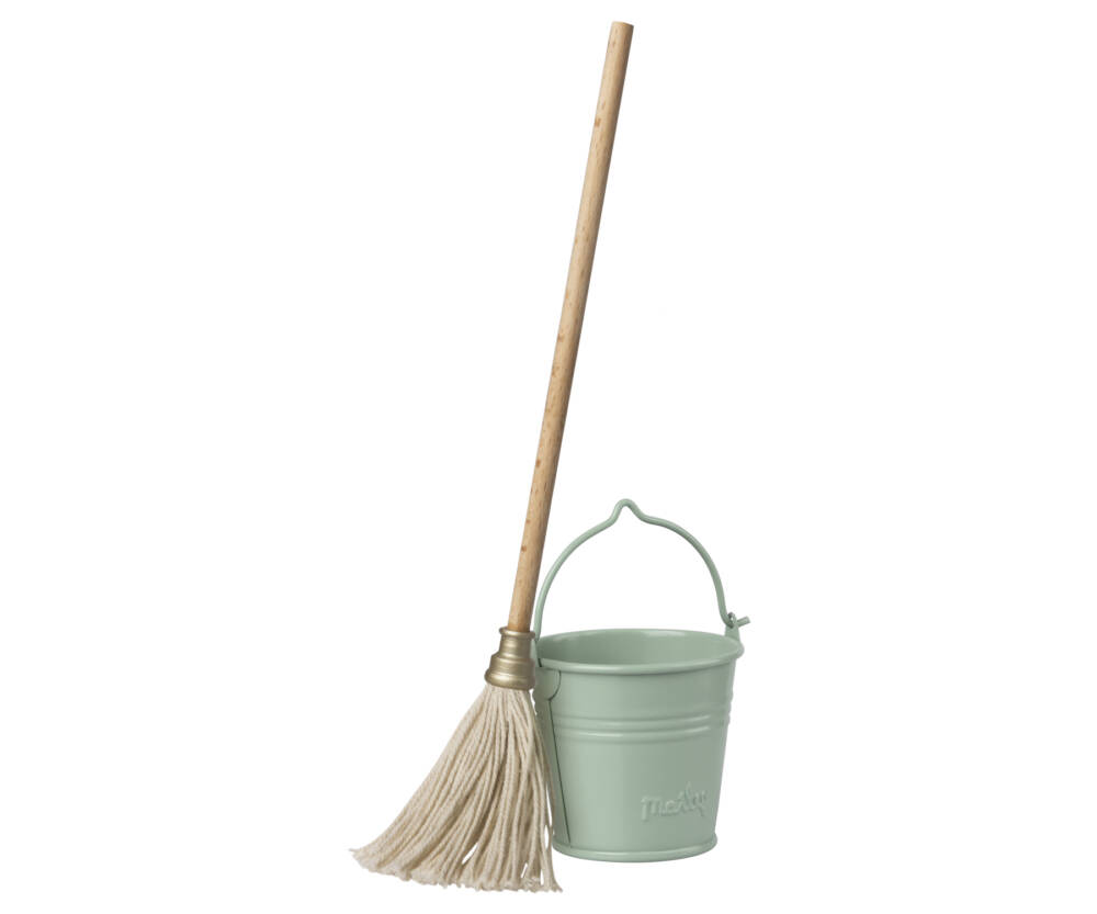 Gli amici di Maileg hanno bisogno di un secchio e di uno straccio per ripulire quei pasticci che fanno. Questo secchio con mocio è perfetto per gli amici Maileg di taglia MINI. Personaggi acquistabili separatamente,