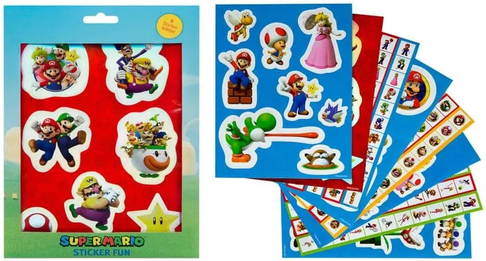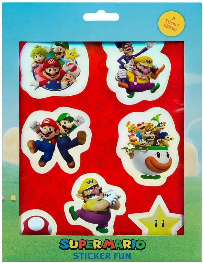 Super Mario Adesivi Divertenti misti 8pcs Fogli 145×100 Mm.