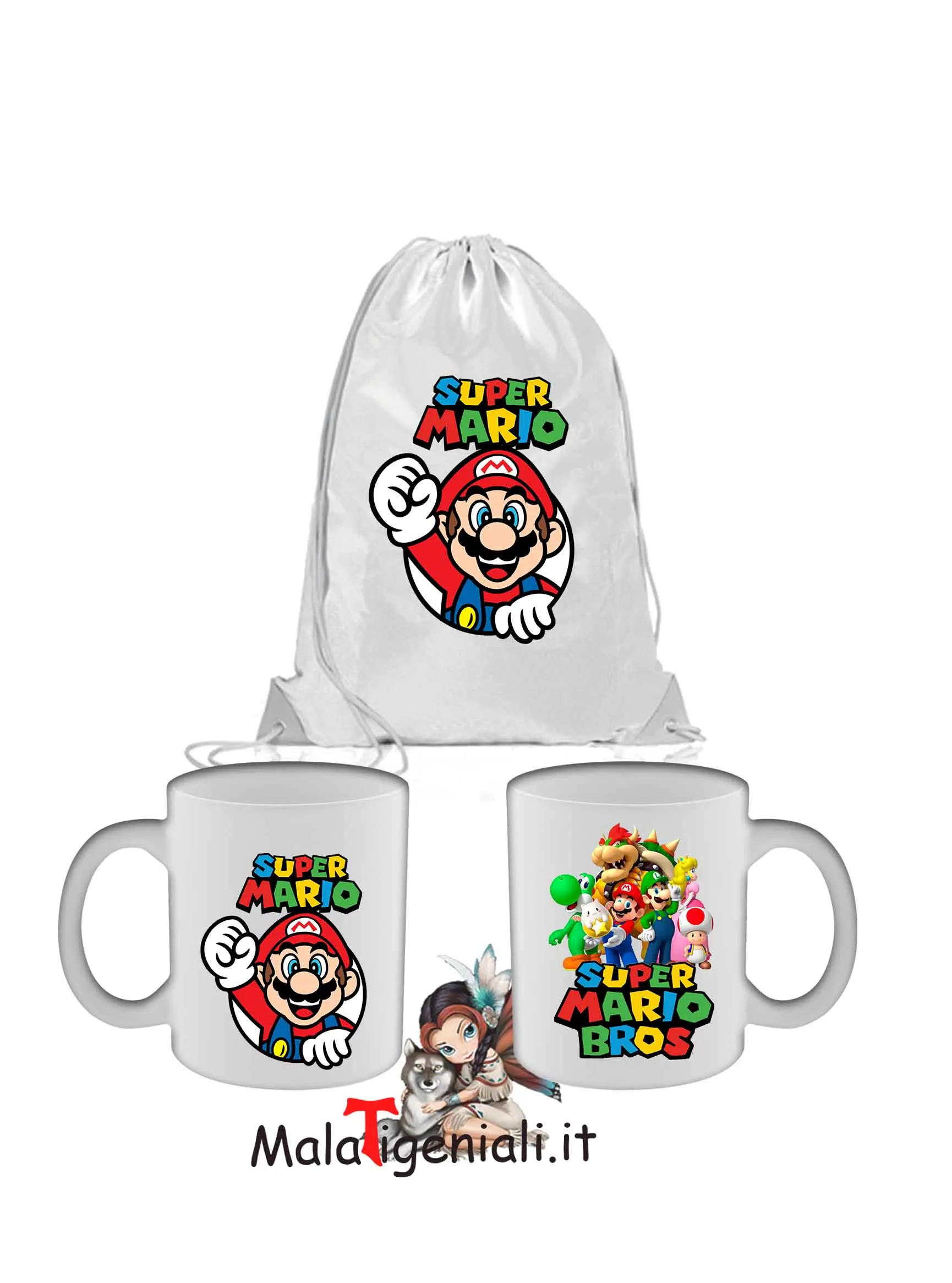 Super Mario Tazza Colazione e Sacca UTILIZZIAMO SOLO ARTICOLI DI OTTIMA QUALITÀ. SCEGLI IL PRODOTTO CHE PREFERISCI, SELEZIONA LE SPECIFICHE DAI MENÙ A TENDINA E CLICCA SU COMPRALO SUBITO. CONTROLLA L’ORDINE EFFETTUATO E CLICCA SU ACQUISTA. UNA VOLTA ACQUISTATO IL PRODOTTO, PROCEDI AL PAGAMENTO. IL PRODOTTO VERRÀ SPEDITO CON CORRIERE ESPRESSO ENTRO 36H LAVORATIVE DALLA RICEZIONE DEL PAGAMENTO. SI PREGA DI INSERIRE NELLE NOTE UN RECAPITO TELEFONICO PER IL CORRIERE GRAZIE!!!