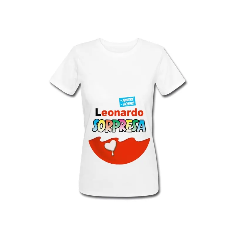 T-Shirt Maglietta Donna Ovetto Uovo Bimbo Sorpresa, Personalizzata con Nome o soprannome nascitura! Gravidanza Divertente! (Copia)