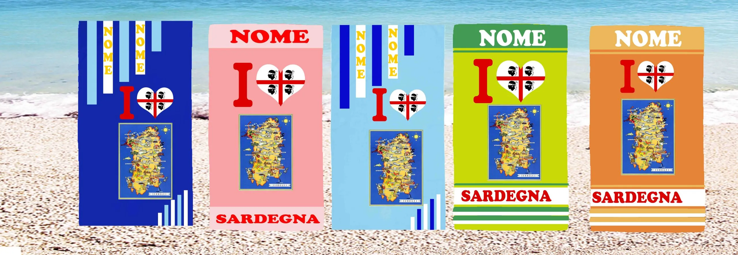 Telo Mare Sardegna in Microfibra grafica Personalizzata con Nome Morbido e Compatto dall’ Asciugatura Rapida (90x170cm)