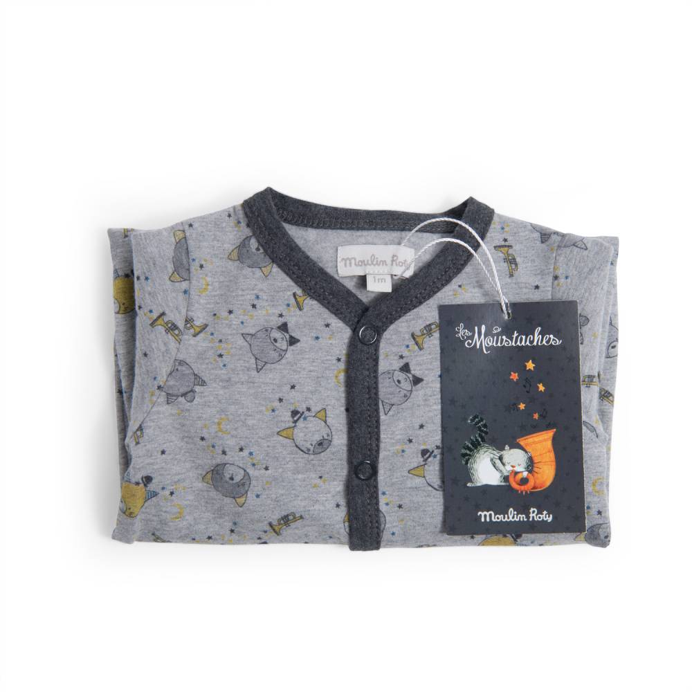 Per un abbraccio di morbidezza, Moulin Roty propone una linea di tutine per i più piccini, dedicate alle collezioni che hanno fatto dell’azienda leader nel settore giochi. Les Moustaches ispira la fantasia gatti di questa tutina, dove tutti da scoprire, piccoli e grandi dettagli si susseguono sul tessuto di jersey color grigio…in perfetto stile Moulin Roty. Disponibili per i 3 e i 6 mesi.