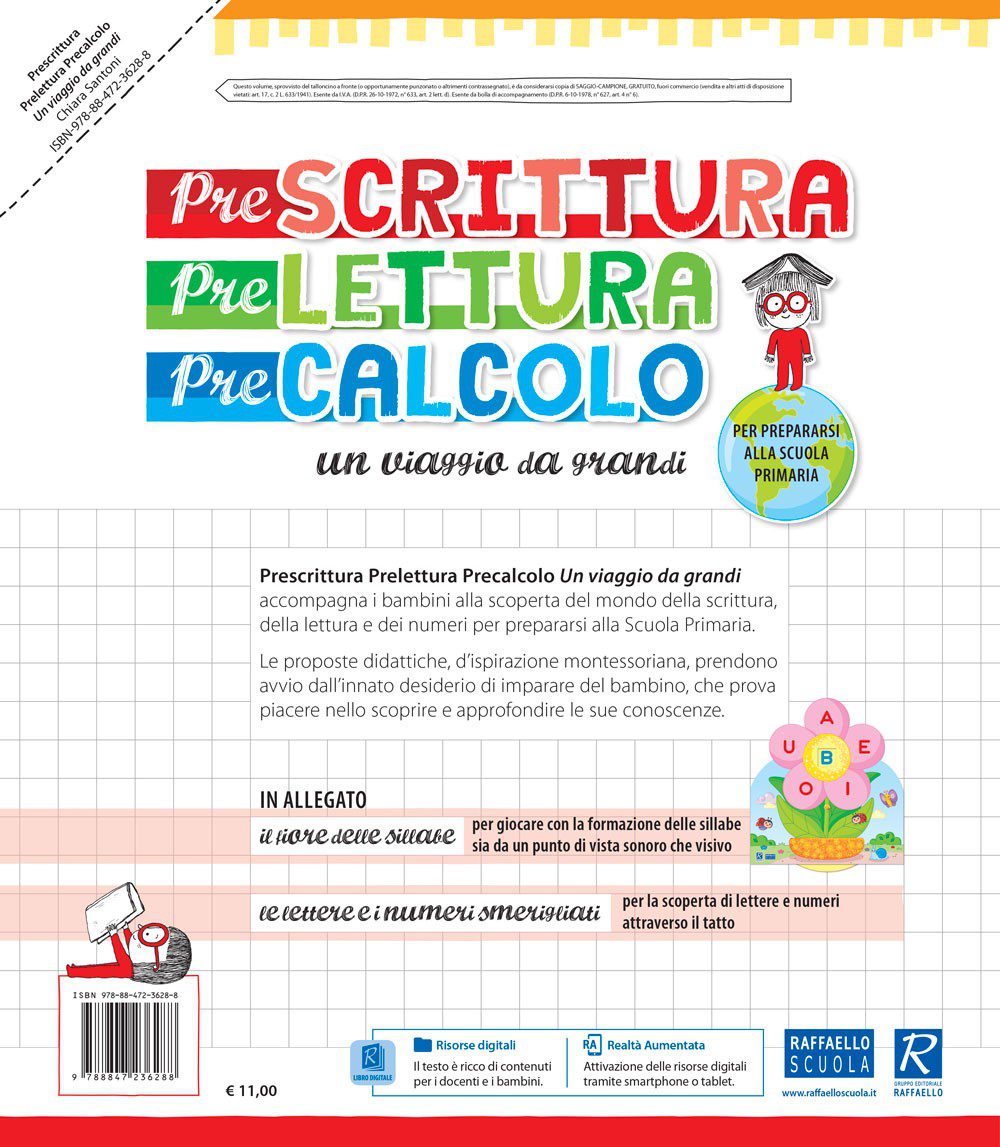 Prescrittura Prelettura Precalcolo Un viaggio da grandi accompagna i bambini alla scoperta del mondo della scrittura, della lettura e dei numeri per prepararsi alla Scuola Primaria. Le proposte didattiche, d’ispirazione montessoriana, prendono avvio dall’innato desiderio di imparare del bambino, che prova piacere nello scoprire e approfondire le sue conoscenze.