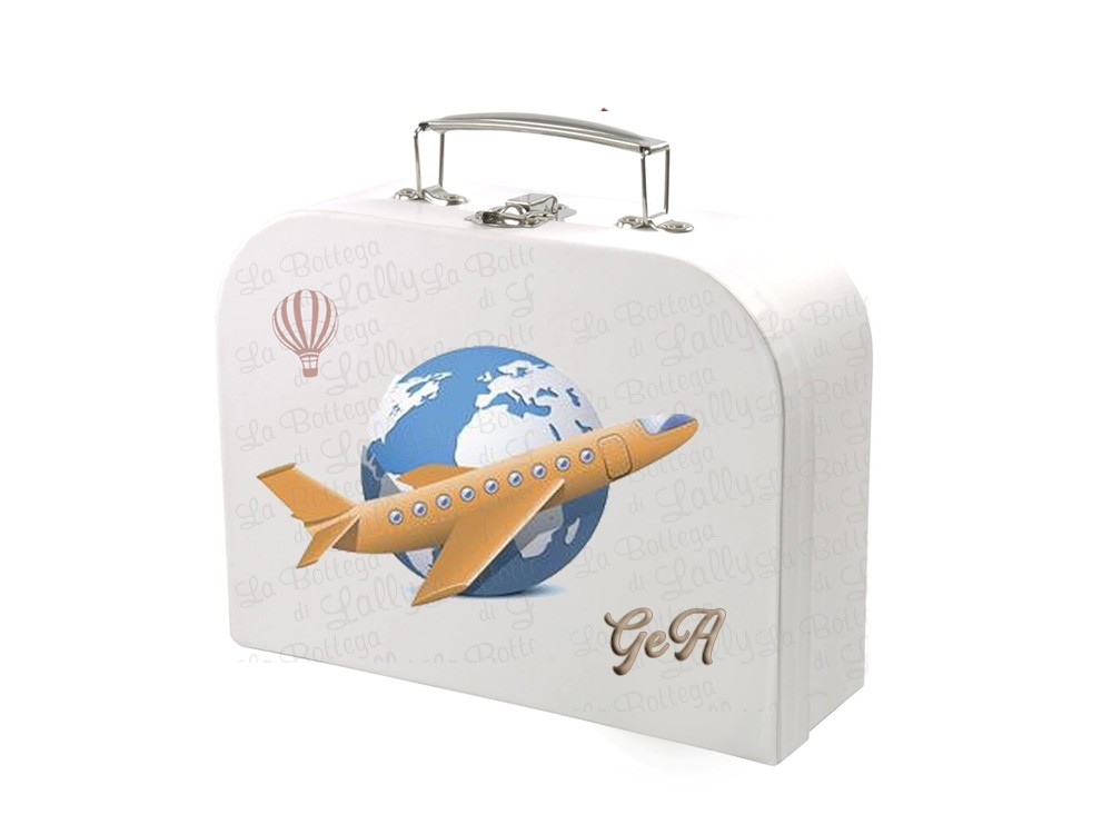 Originale e bella valigia portafedi in cartone ideale per un matrimonio tema viaggi. E’ personalizzabile in tutte le sue parti.