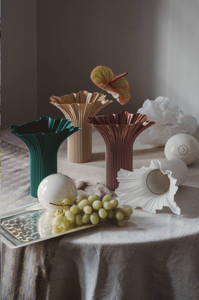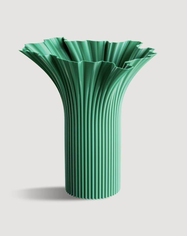 Un verde smeraldo, intenso, brillante, ma caldo ed elegante. Un omaggio a Vienna e ai fiori che decorano le sue strade. La bocca che si apre verso l’alto, ricorda le pieghe naturali della carta che abbraccia i fiori. Perfetto per i fiori dallo stelo lungo, i bouquet ricchi di fiori, ma anche per le composizioni più leggere in cui si desidera mettere in risalto i singoli fiori. I vasi sono dotati di un inserto in vetro che li rende funzionali per i fiori freschi. Progettati e stampati in 3D a Vienna sono realizzati con ingredienti naturali, con poco o nessuno spreco, utilizzando strumenti digitali all’avanguardia secondo una filosofia di design minimalista e contemporanea. Il tocco perfetto in ogni angolo, perché anche senza fiori decorano.. una piccola architettura per la casa.